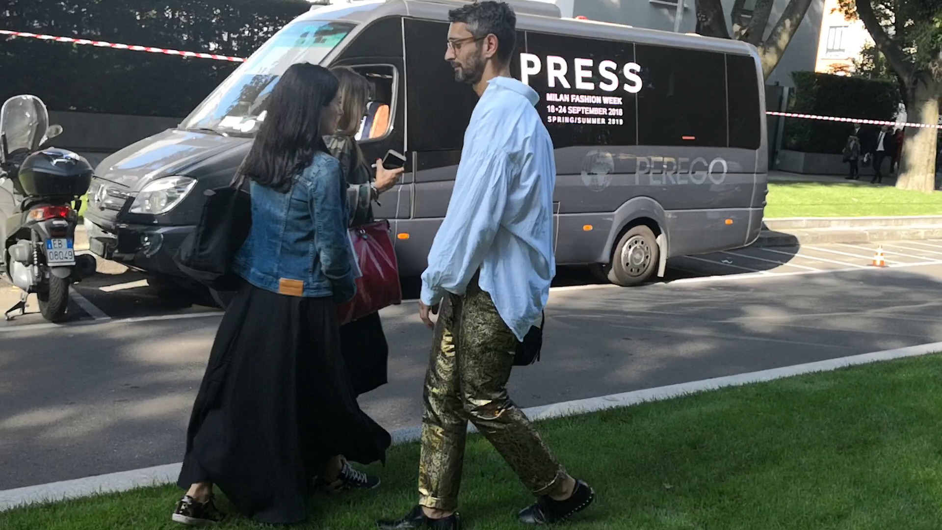 Taliansky kritik módy a módny editor pozývaný na svetové týždne módy SIMONE MARCHETTI zvolil na prehliadku značky Giorgio Armani zlaté nohavice. V tomto outfite v slnečnom teploom počasí, ktoré vládlo počas septembrového Milan Fashion Weeku už z dialky žiaril a stihol zapózovať aj street fotografom. Simone Marchetti bol teraz menovaný novým šéfredaktorom známeho magazínu Vanity Fair Italia, ktorým sa stane od decembra 2018. Nahradí tak Daniela Hamaui. Simone doposiaľ pracoval ako módny editor, kritik v denníku La Repubblica. Jeho inteligentné módne reporty ho posúvali vpred a nechýbal tak na svetových týždňoch módy a prehladkach, kde dostával prvé rady, tzv. front row. S touto zaujímavou správou sa pochválil 6. novembra na svojom instagramovom profile. So Simone mám ostatne ďalšiu fotografiu aj z tohto milánskeho týždňa módy, tentokrát po prehliadke značky Ermanno Scervino.