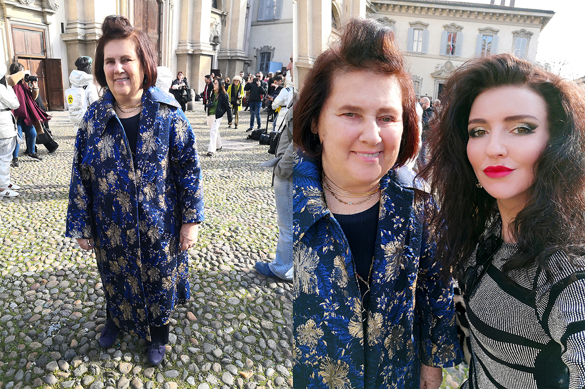 Na prehliadke značky Etro som opäť oslovila módnu žurnalistku a expertku, kritičku módy z magazínu Vogue z Veľkej Británie, pani Suzy Menkes, ktorá si užívala milánsky módny týždeň a viaceré módne prehliadky bez obáv a bez ochrany tak ako všetci prítomní. Miláno vysielalo pozitívnu energiu, dni boli slnečné a teplé, priali šatám a pani Menkes predviedla na prehliadke značky Etro štruktúrovaný luxusný kabát tohto módneho domu.