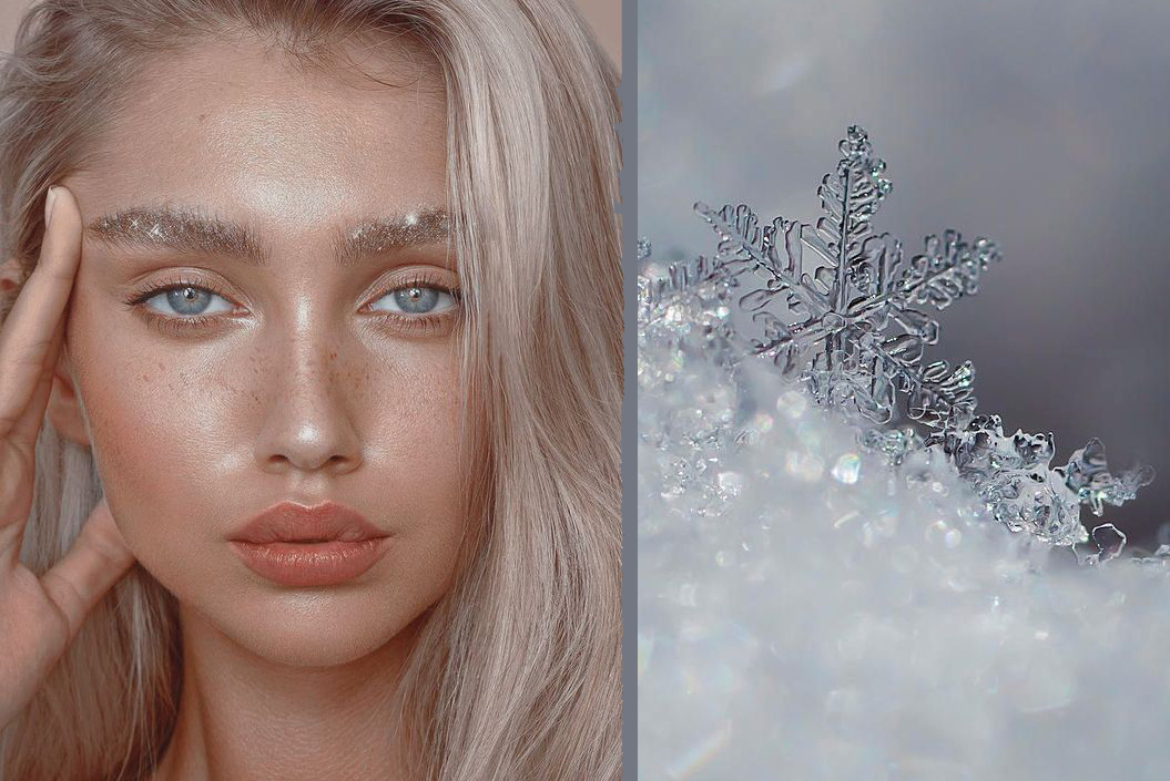 S troškou glitrov netradične použitých na obočie, ktoré zvýrazníme vyčesaním dohora, so zimným odtieňom blond vlasov, prirodzeným make-upom tváre rozžiareným rozjasňovačom , môžete vyzerať ako ľadová kráľovná. K tomu už len zimná červeň na líčka a chladné do oranžova sfarbené šťavnané pery.