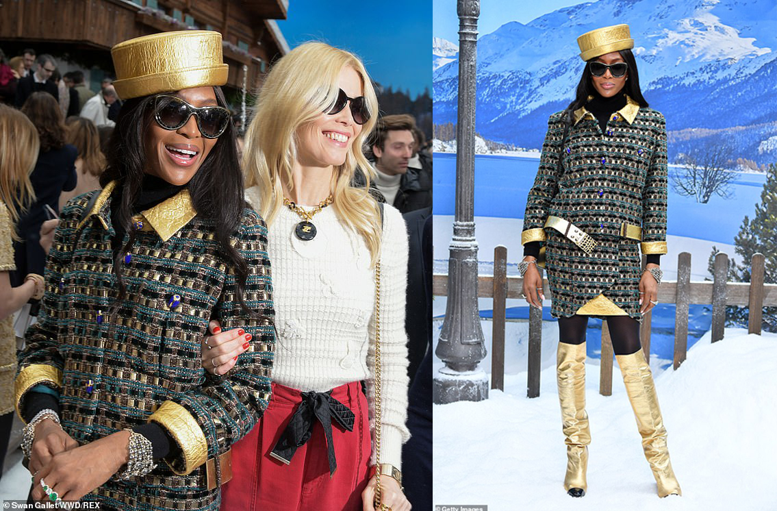 V hľadisku sedeli múzy ešte z dávnej minulosti Karla Lagerfelda, obľúbená modelka Claudia Schiffer a Naomi Campbell.
