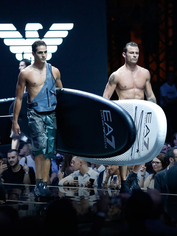 Pre sezónu jar – leto 2019 predstavila značka Emporio Armani trendy v podobe extra luxusnej cesty medzi high tech materiálmi, plastickými materiálmi, metalickými hodvábmi a jagavými iskrivými precíznymi výšivkami.