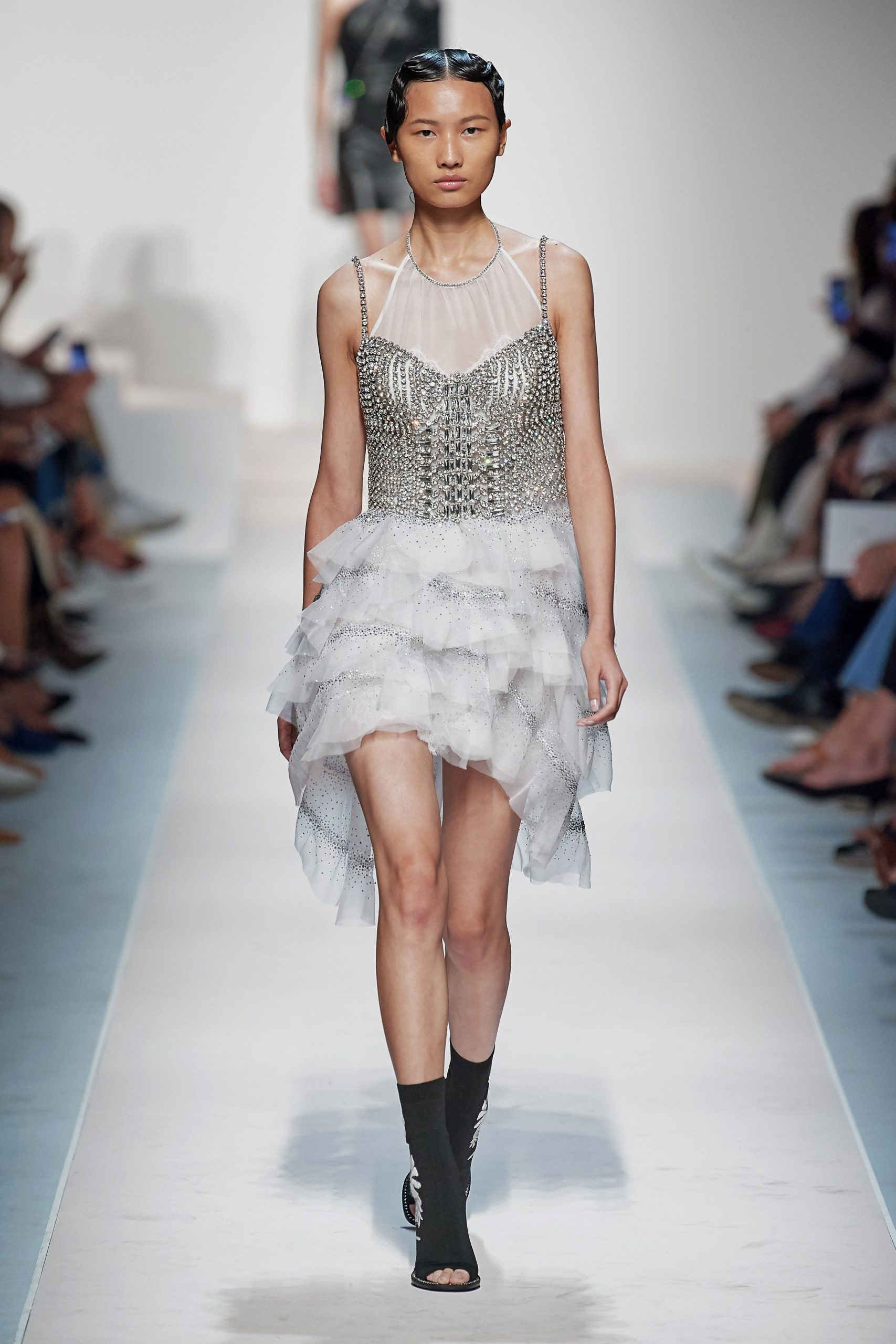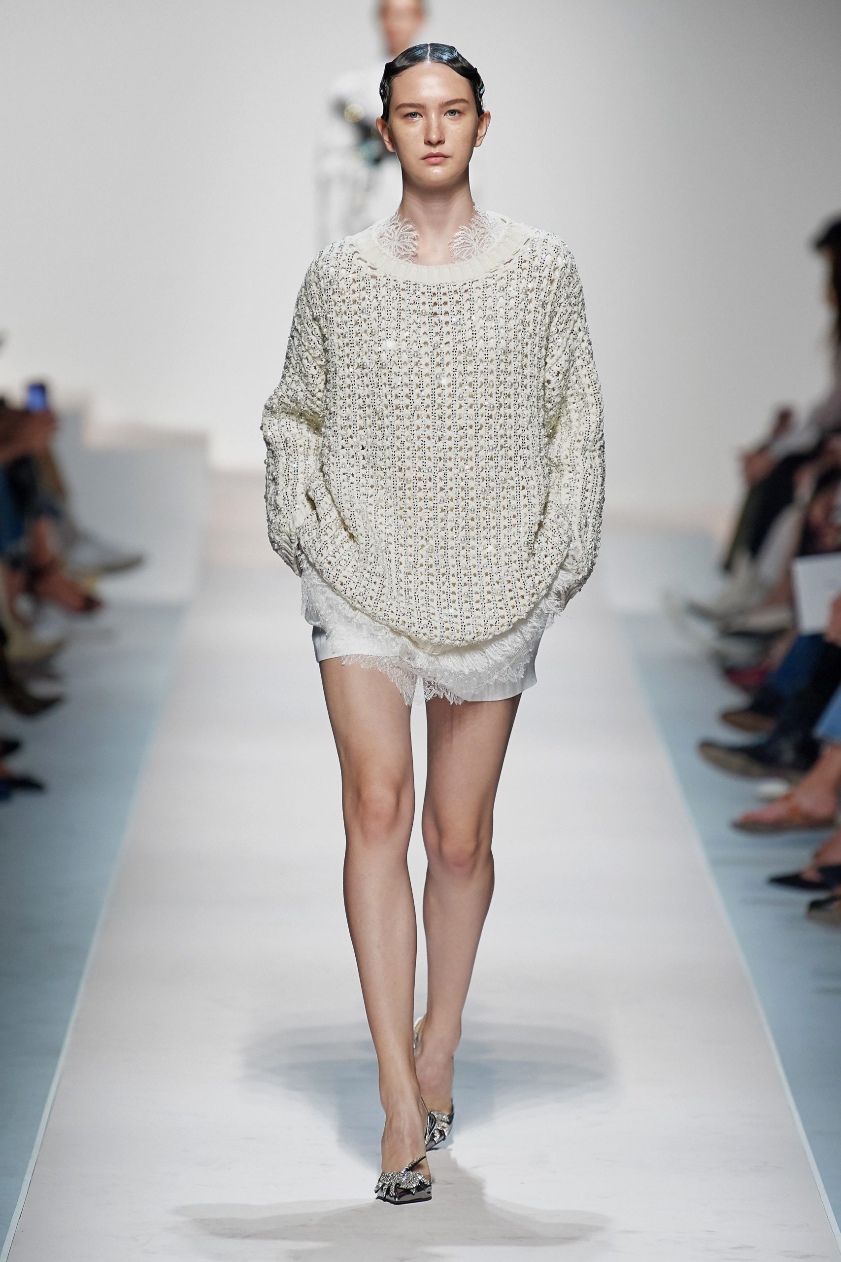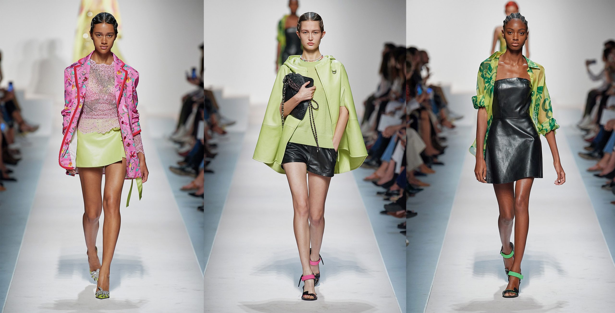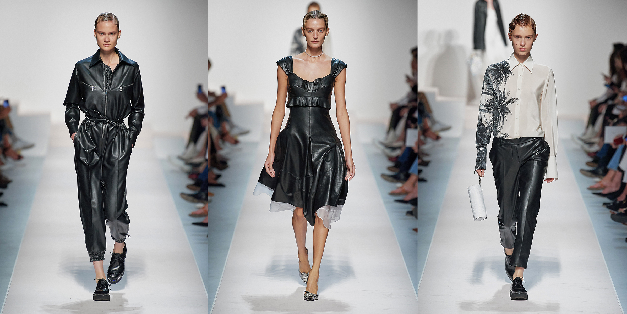 Hlavným materiálom v kolekcii Ermanno Scervino, Jar/Leto 2020 bola koža na športových modeloch šiat, nohavíc a overaloch.