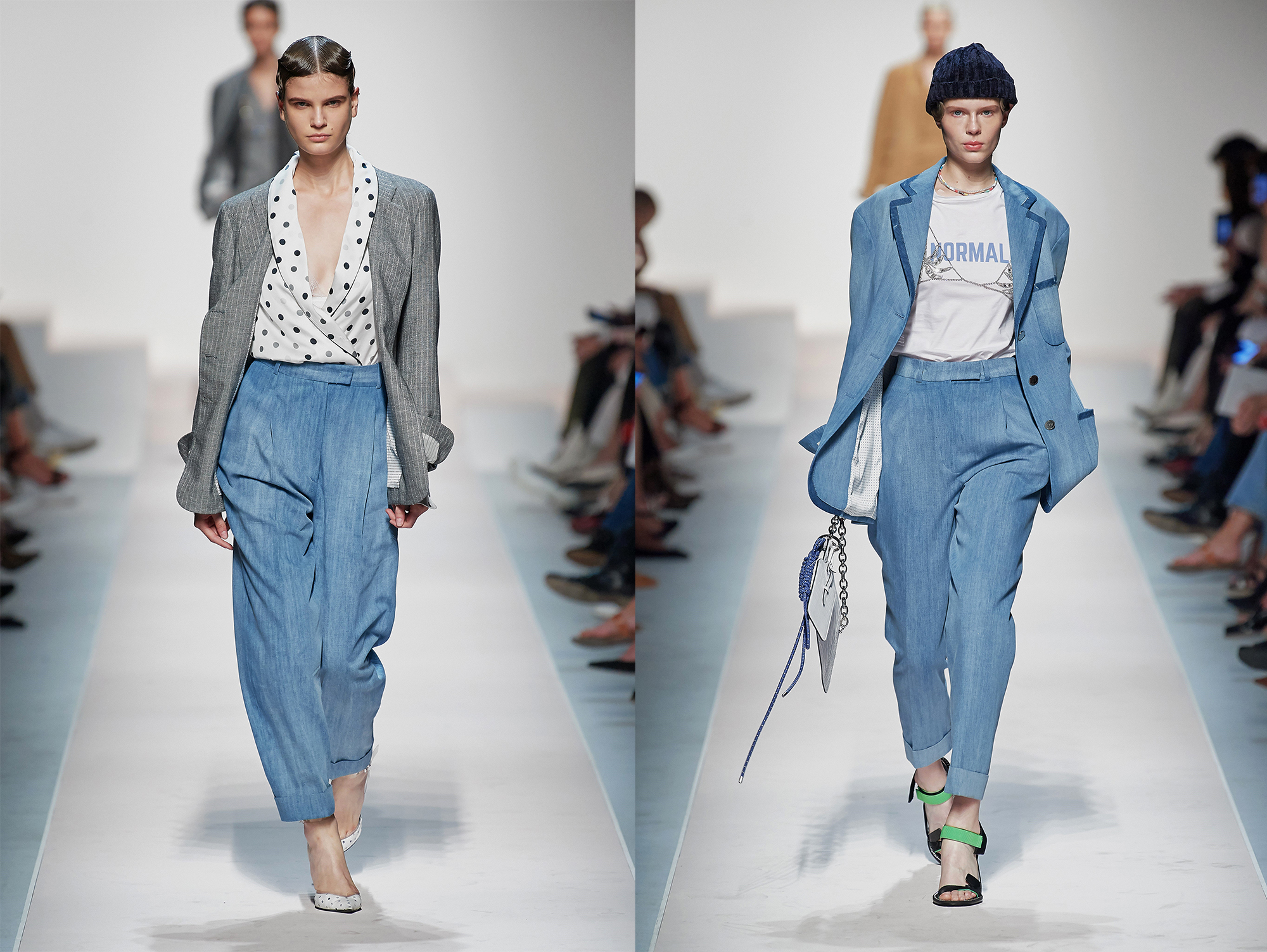 Veľmi jemný denim na športových modeloch bol osviežený rozptýlenými florálnymi motívmi.
