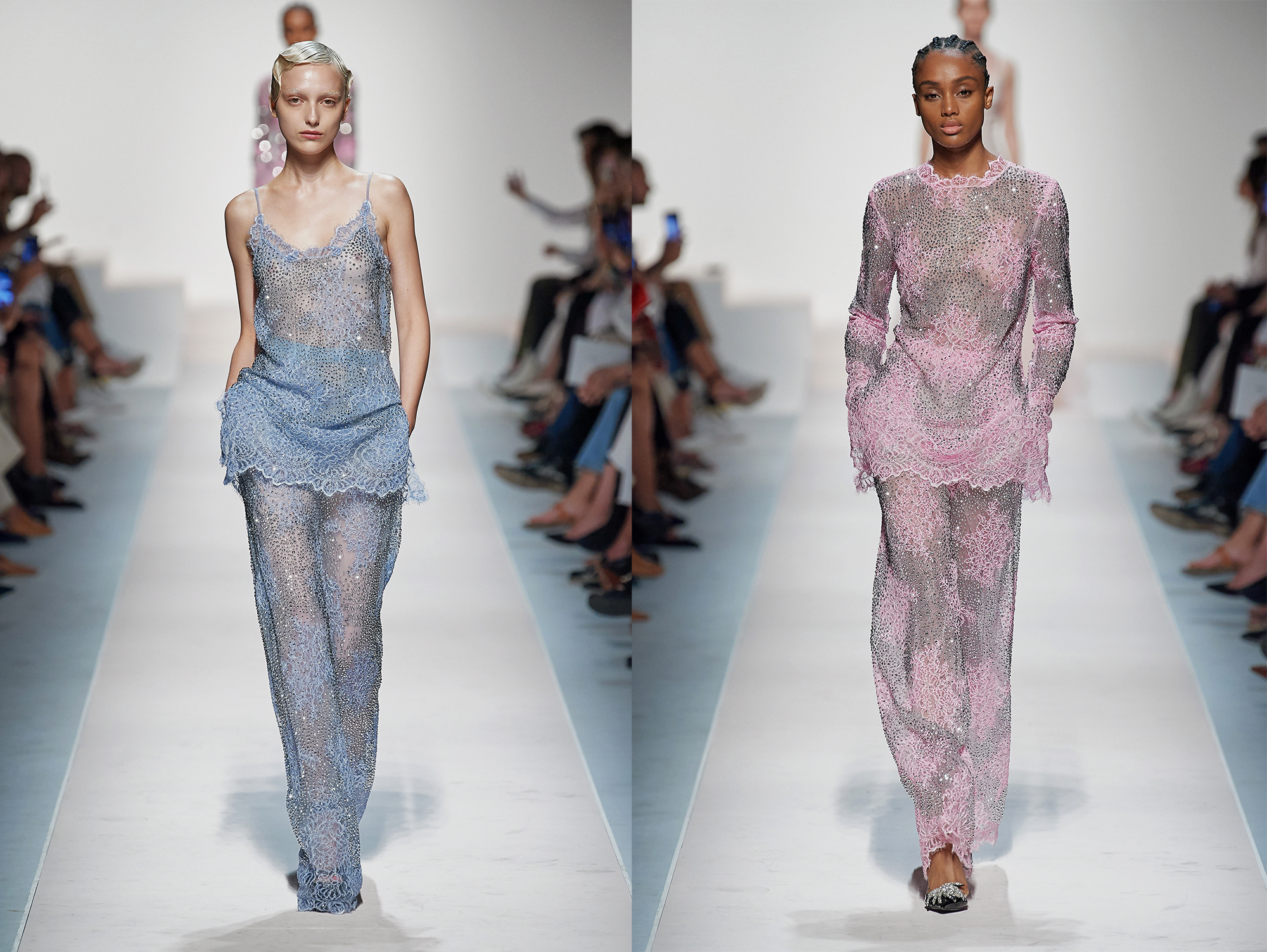 Nočné košieľky a pyžamá sa stali skvostnými večernými šatami jemnými ako pavučinka zdobená kamienkami.
