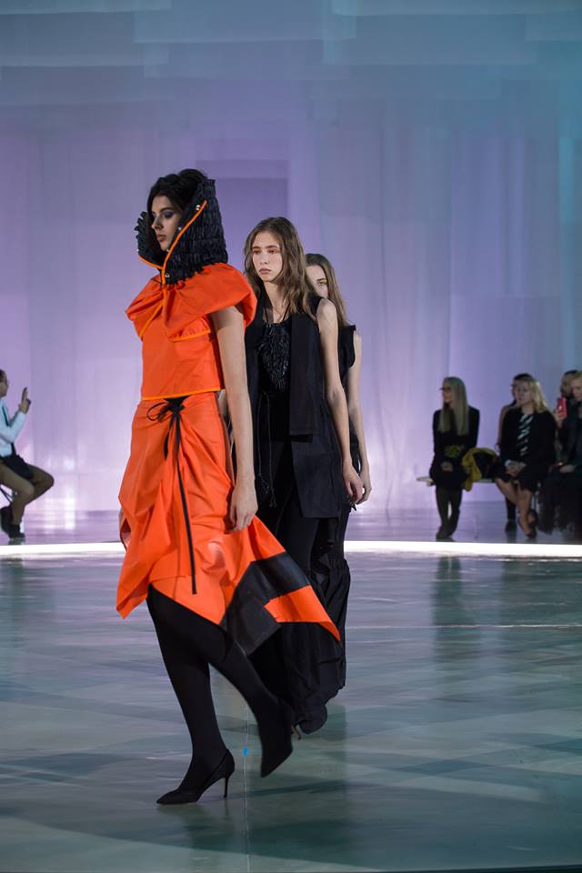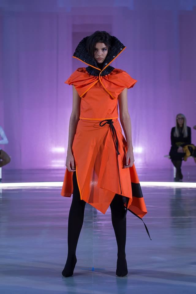 Návrhárka Petra Kubíková pôsobiaca v Bratislave sa predstavila s kolekciou Under/Cover ako predposledná z prvého prehliadkového dňa. Video a ostatné fotografie si môžete pozrieť na facebook stránke blogu s názvom Mya Mirell Fashionista. Petra predstavila kolekciu určenú na jeseň pozostávajúcu z plášťov, kabátov, zvrchného odevu a šatkových pokrývok hlavy. Všetko jednoduchých strohých strihov, štylizácie, zamerala sa na zaujímavé ale jednoduché tvary. Módna návrhárka využíva strohú geometriu a kolekciu nastavila s možnosťou ľahkej kombinovateľnosti. Inšpirovala sa Japonskom. Využité materiály tvorila vlna, bavlna, šušťákovina a koža. Farebne bola kolekcia ladená do neutrálnych farieb od šedej, béžovej a čiernej až na výnimky a tými boli červený a zelený model. Modelky mali všetky na nohách jednotne obuté biele čižmičky v kooperácii so značkou Wojas, ktoré plne korešpondovali s jednoduchosťou kolekcie a jednotné šatkové pokrývky hlavy, ktorými chcela kolekciu zjednotiť. Kabelky s predimenzovaným tvarom som videla už niekoľkokrát, napríklad aj teraz počas Milan fashion weeku, ale nijako to nerušilo celkový dojem z jednotnosti kolekcie. Všetko mi tam dokopy sedelo, choreografia a celkové predvedenie kolekcie vytváralo pokľudný dojem z prehliadky. Petra sa v závere módneho podujatia Fashion LIVE objavila ako jedna z ocenených.