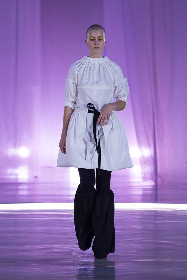 Módna návrhárka Doroti Vojtková vytvorila kolekciu Preľude, ktorou zahájila prvý deň otvorenia Fashion LIVE módneho podujatia. Názov Preľude je komplexným symbolom pre počiatok, je obrazom našej histórie a kreovania. Návrhárka sa vo svojej tvorbe zameriava na slovenské ľudové umenie, čo bolo viditeľné aj v tejto kolekcii, ktoré je inšpiráciou pre vytváranie moderných odevov. Dominovali materiály ako prírodný ľan, hodváb a bavlna. Zaujali ma modely ako široká sukňa či tento model so zvýšeným pásom, faldami a na štýl, aký je túto sezónu jeseň/zima 2018-19 trendy napríklad aj v podaní svetovej návrhárky Alberta Ferretti – široké ramená, akoby návrat do 80. rokov, zvýraznený vysoký pás, mrkvový strih, faldy, funkčné vrecká a špicaté čižmy. Ostatné fotografie si môžete pozrieť na facebook stránke blogu s názvom Mya Mirell Fashionista.