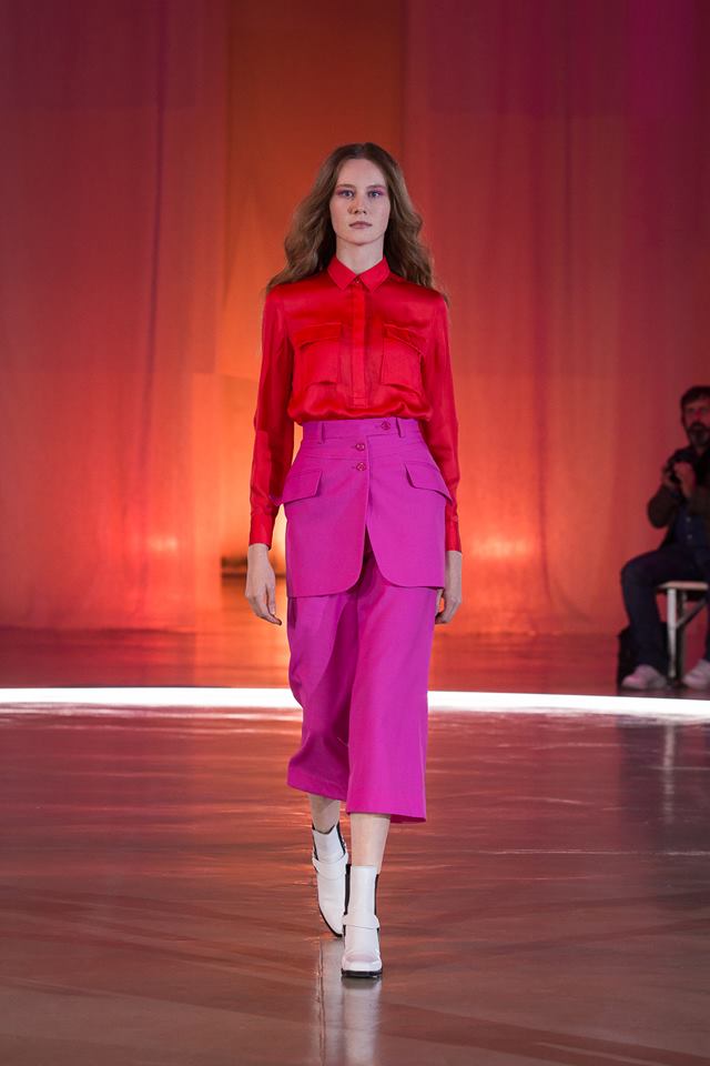 V tvorbe vyznáva tradičné krajčírstvo. Jej kolekcia bola veľmi zaujímavá na strihy aj farby. Mne sa páčilo hneď niekoľko modelov, ktoré boli na rozhraní mužsko-ženských strihov, zvýšených pásov a s nádychom ženského glamour a práve to ma vrátilo do minulosti.