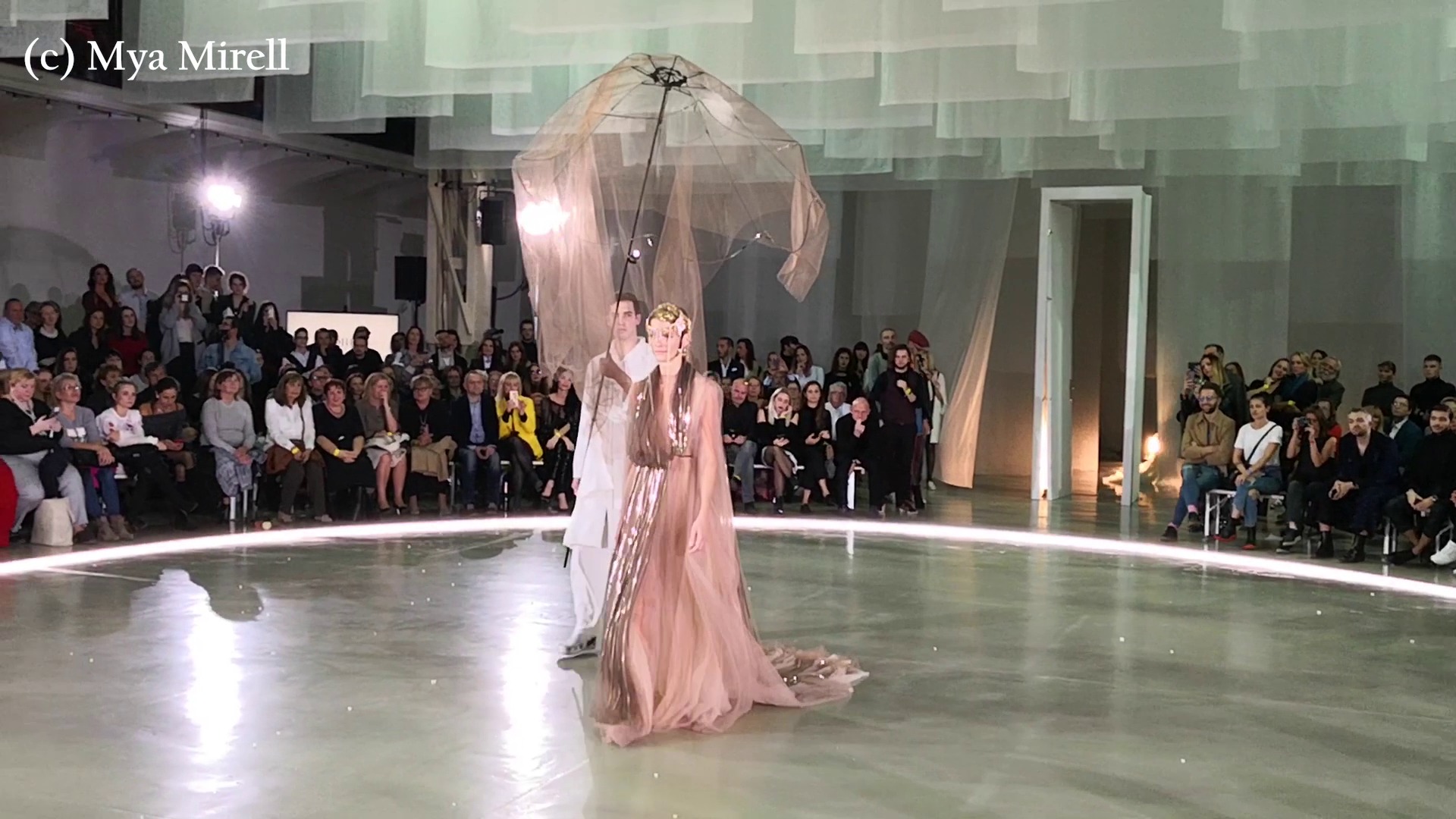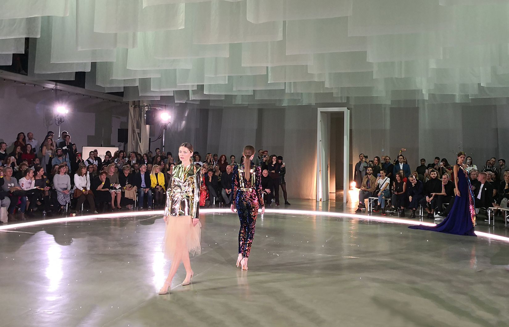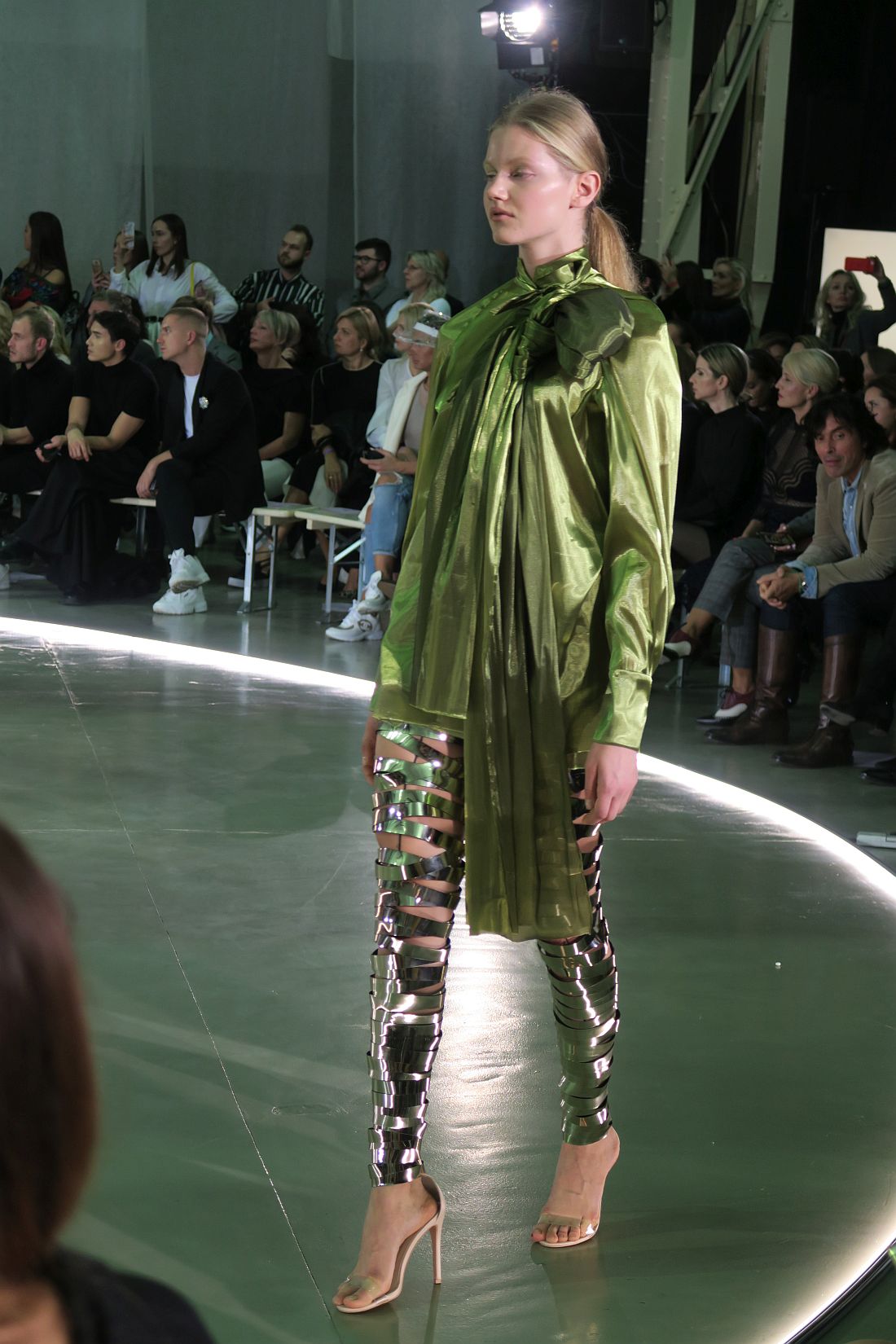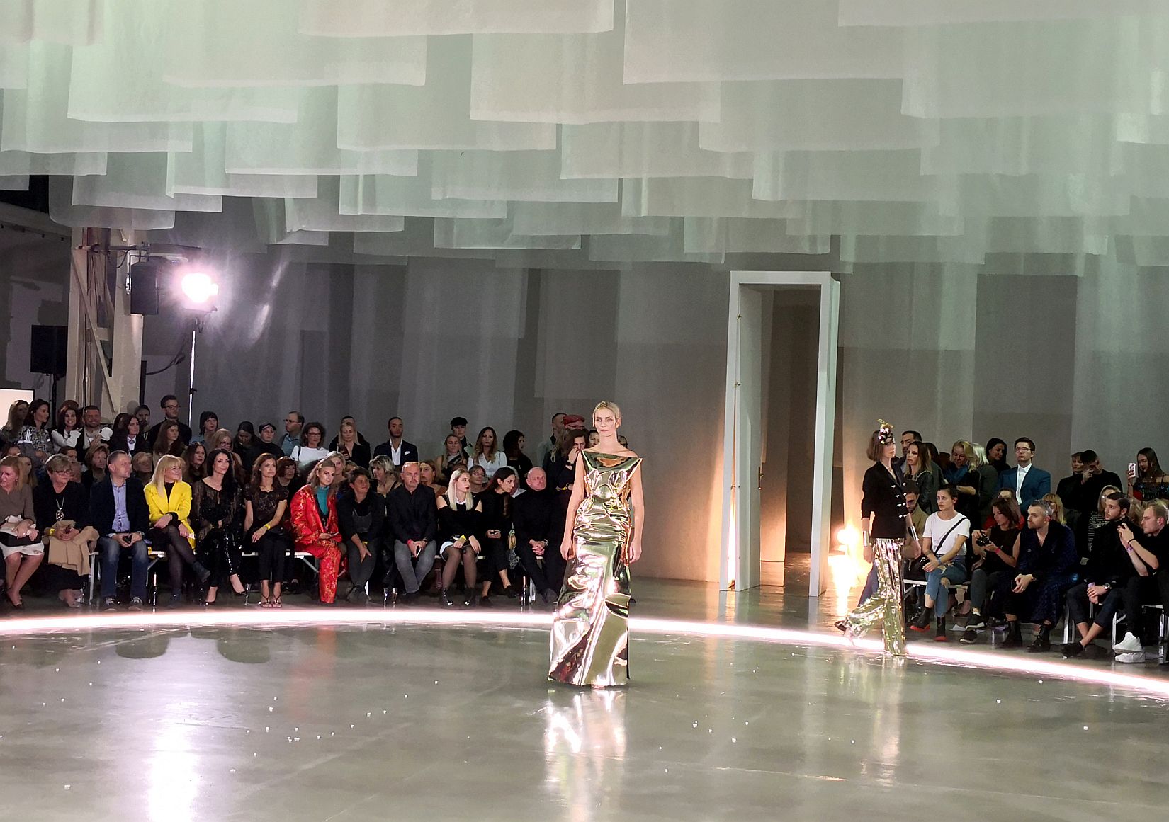 Kolekcia pridala ešte na opare šialenosti materiálmi – fólie, flitre, plast, akoby lesklý zlatý kov sa na modelkách ani nepohli a tie sa v tom zvláštne pohybovali a jagali sa v lesku tejto bizarnosti. Dokonalé zvládnuté divadlo bláznovstva.
