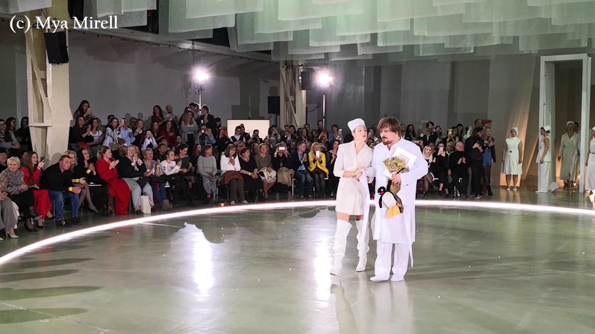 Záverom však myslím, že nebyť príliš pomalého timingu, miestami až rozvláčneho, kedy trošku diváci strácali trpezlivosť a pozornosť pokryvkávala, sa mi celá táto nápaditá show na rozdiel od českého kritického hlasu, aj keď s uvedenou paralelou, páčila. Spočiatku som mala rozporuplné pocity, ktoré niesli jediné slovo gýč, no ideové vysvetlenie návrhárovej koncepcie to ostie noža otupilo a balans sa zastabilizoval. Módna show by bola viac oživením, nebyť miestami veľmi spomaleného predvedenia, čo jej vo výsledku nepomáhalo. No na záver je každý generál. Slovenské publikum však tento návrhárov odvážny počin a vybočenie z istého štýlu počas záverečného defilé nadšene odmenilo burácajúcim aplauzom. Boris Hanečka tomu celému ešte nasadil korunu, keď sa na konci zjavil ako vyšinutý doktor, či pacient s plyšákmi v náručí, ktorému museli pomáhať a potmehútsky s úsmevom túto svoju rolu aj s ľahkosťou zahral.