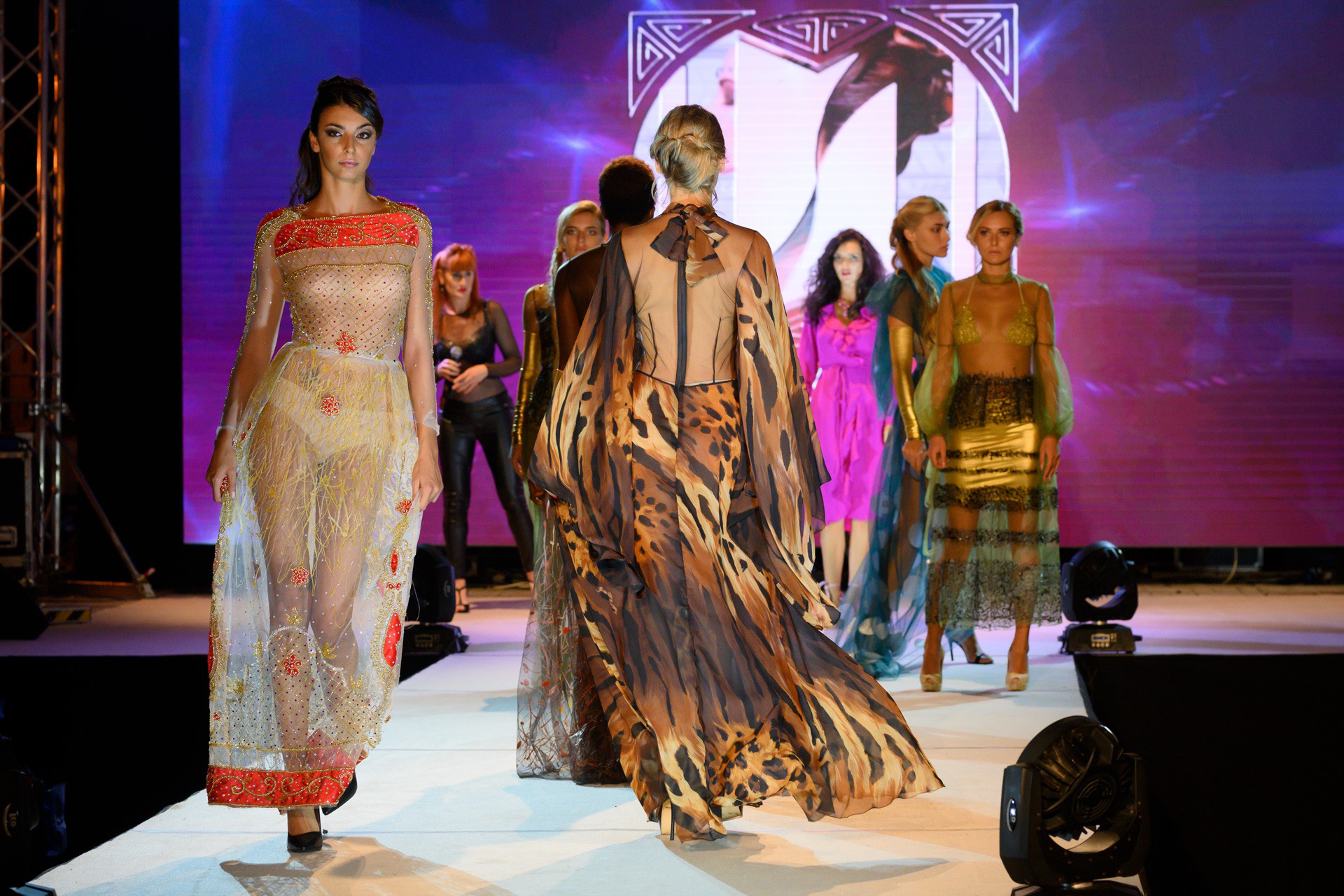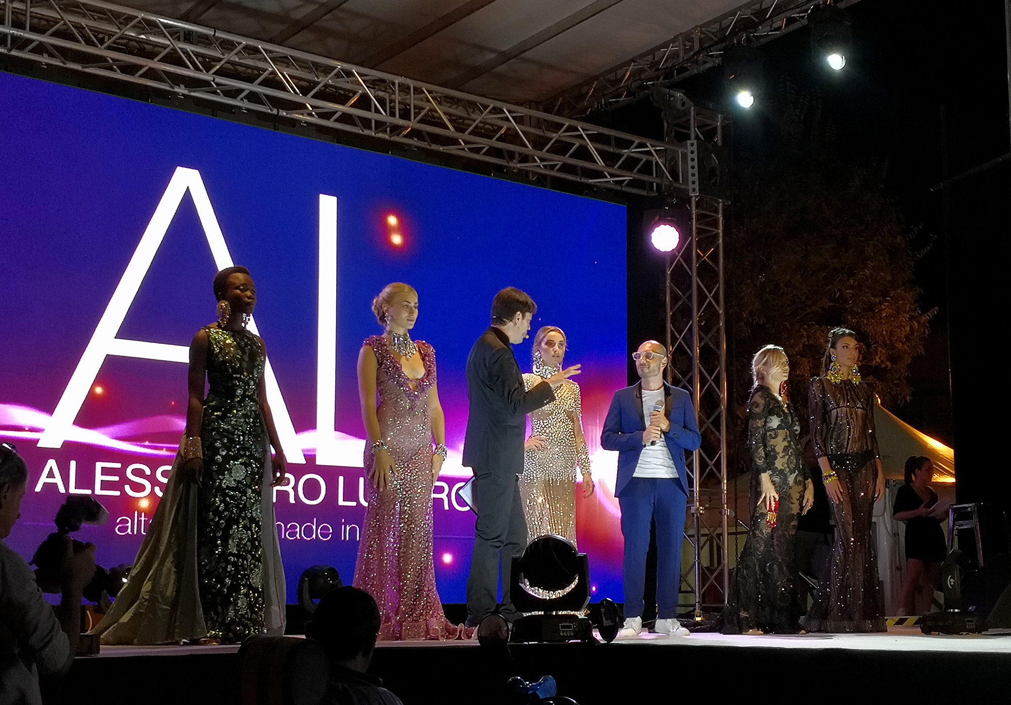 Módny dizajnér Alessandro Lustro ponúkol divákom nádielku skvostných sexi glam šiat, ktoré sa na modelkách nádherne vynímali v žiari reflektorov a očarili prítomné publikum. Výrazné boli predovšetkým zelené večerné šaty predvedené s gráciou černoškou modelkou Ndack Nicki Gueye.