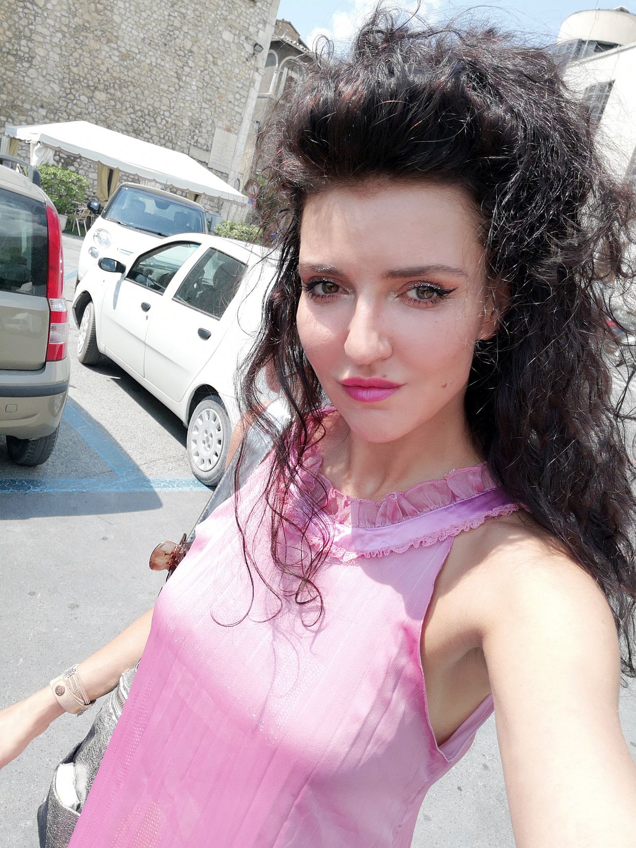 Z Ríma sme na podujatie pricestovali viacerí zúčastnení, cesta trvala asi dve hodinky, no celý čas bolo pekelne horúco. Mala som na sebe azda najletnejšie šaty, no teplo vás dostihlo aj tu. Po zabývaní sa v neďalekom hoteli blízko námestia nastali prípravy. Módni dizajnéri skúšali modeli na modelkách a modeloch, ktoré si nacvičovali chôdzu a na všetko dozerala riaditeľka a choreografi. Počasie bolo stále horúce, 36 stupňov bolo na mňa pri skúškach príliš. Najmä v týchto vlasoch.