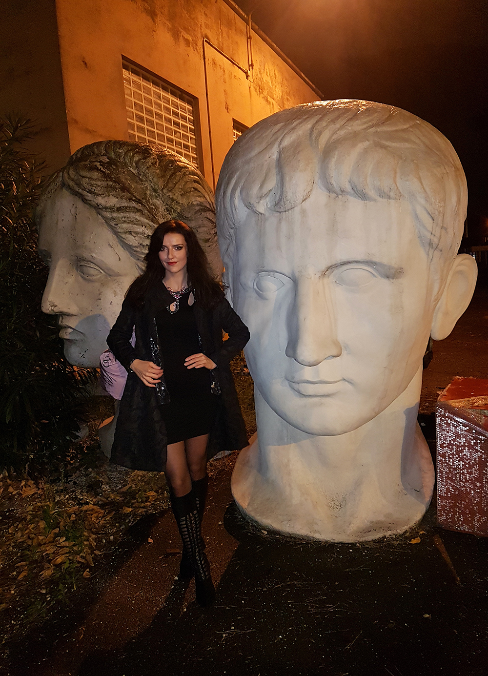 Filmové ateliéry vonku skrášlovali takéto sochy. Hladký účes mi na večer robil taliansky stylista Manuel Perruzza, za čo mu patrí obdiv skrotiť moje už vyhladené kučery, ktoré sa v priebehu skúšania opäť zvlnili.