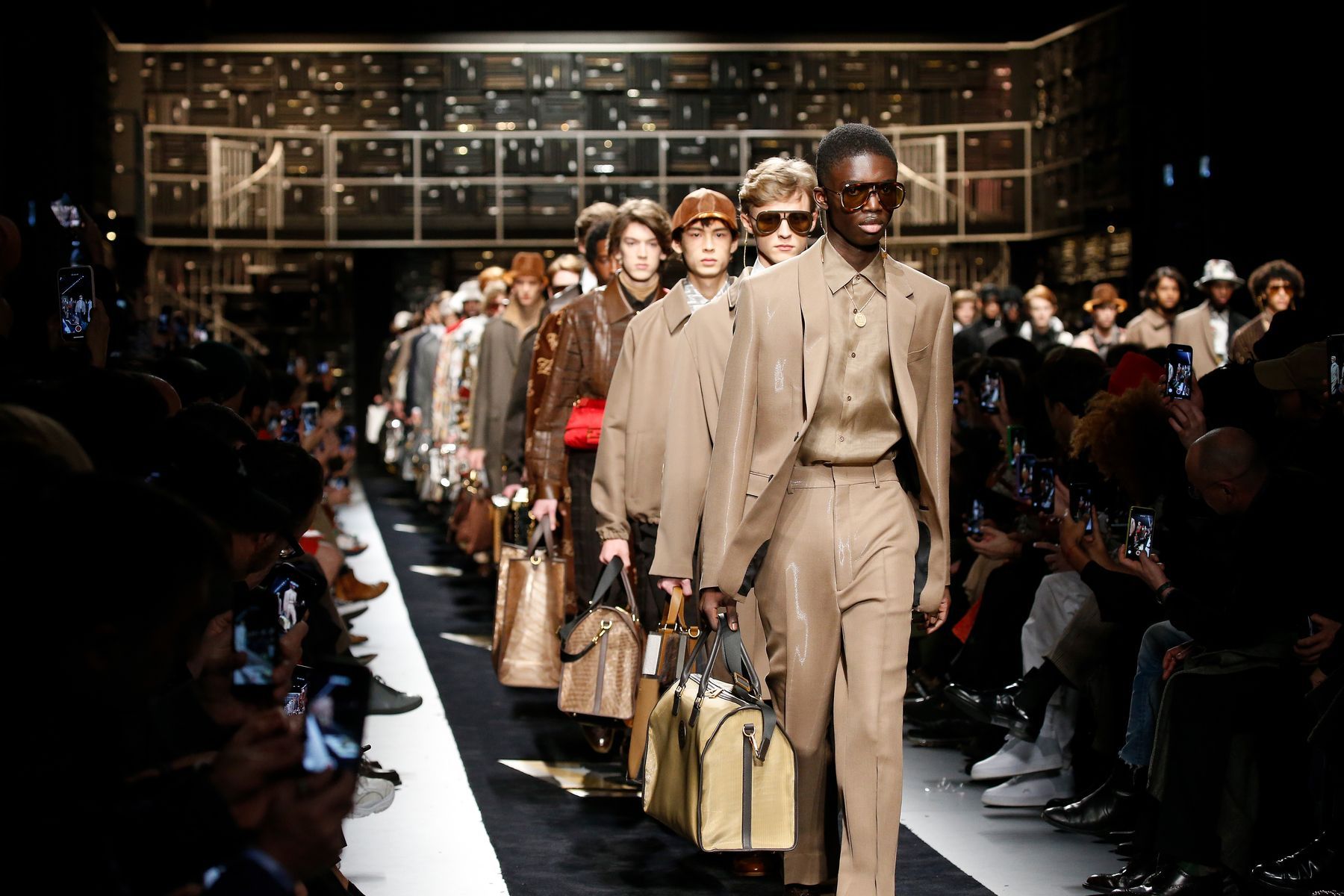 Hoci je dizajnér Karl Lagerfeld známy pre dámsku módu, svoju pozornosť a víziu vložil aj do pánskej módy. Prvá a posledná kolekcia pre mužov v značke Fendi, bola kolekcia pre Jeseň/Zimu 2019 – 2020. Kolekcia z kože a kožušiny obsahovala ženské znaky zlatých doplnkov a náhrdelníkov a rolákové a v-výstrihy zo 70-tych rokov.