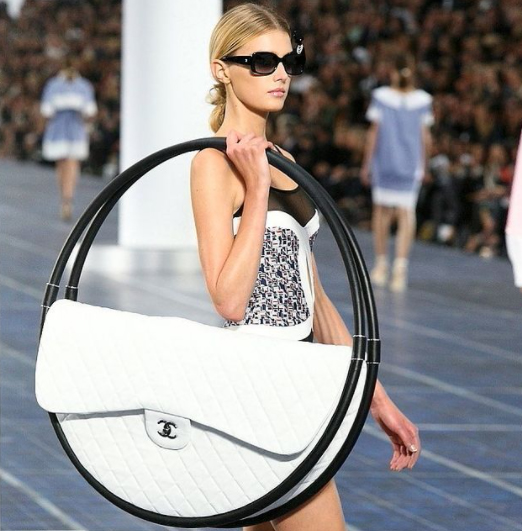 Jeden z najprovokatívnejších nezabudnuteľných dizajnov Karla Lagerfelda je hula-hoop kabelka z prehliadky Chanel, Jar 2013. Pri pohľade na tento model sa natíska jasná otázka, ako sa asi táto kabelka nosí? Lagerfeld to mal však premyslené. Jednoducho ju vraj strčíte do piesku a vyberiete z nej veci. Jednoduché, nie ?