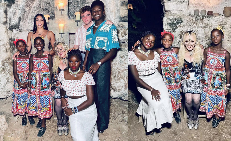 Okrem prítomnosti niekoľkých priateľov sa umelkyni podarilo zjednotiť aj všetky svoje deti: Lourdes León, 24 rokov, Rocco Ritchie (21), David Banda (15), Mercy James (15) a dvojčatá Estere a Stele Ciccone vo veku osem rokov.