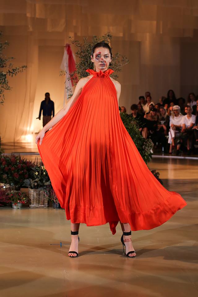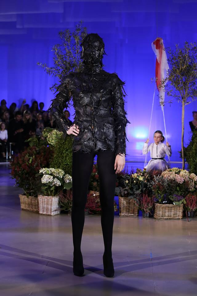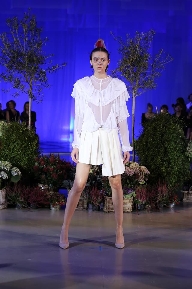Prehliadka začala s uvedením krátkeho videa bohatého na pekné obrázy, ktoré sa premietalo na bočných obrazovkách s poetickým podtextom. Autor videa je Jakub Gulyás. Videli sme skvelú herečku Táňu Pauhofovú, ktorá je aj múzou návrhárovej kolekcie. Jediná výtka je smerovaná na organizátorov, že obrazovky boli umiestnené oproti hlavnému vchodu a teda diváci sediaci v kruhovom pódiu pri vstupe modelov na mólo, mali obrazovky za hlavou a nemohli sledovať dané video. Farby v kolekcii boli použité od bielej, cez jemné farebné kombinácie po temné, zväčša čiernu a na záver prišla nádielka z rozkvitnutej záhrady umiestnenej v strede móla v podobe oranžových, ružových vzdušných farebných šiat.