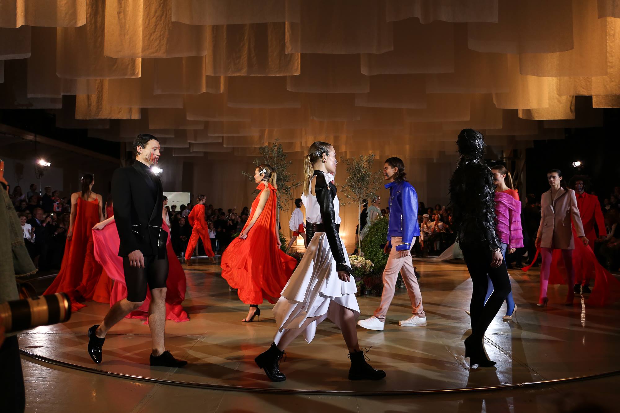 Návrhár mal aj po minulé razy nabité publikum a značný fanklub. Akvarelová farebnosť sa premietla aj do modelov, z ktorých niektorí mali aj tváre potreté farbou náhodnými ťahmi, akoby zrkadlenie fragmentov obrazov. Precízna práca s materiálmi ako šifón, hodváb, koža a dôsledné narábanie s kontrastami boli majstrovsky prevedené do kolekcie. Kožené aplikácie na modeloch vytvárali dojem kohútích pier z Dúbravského obrazov.