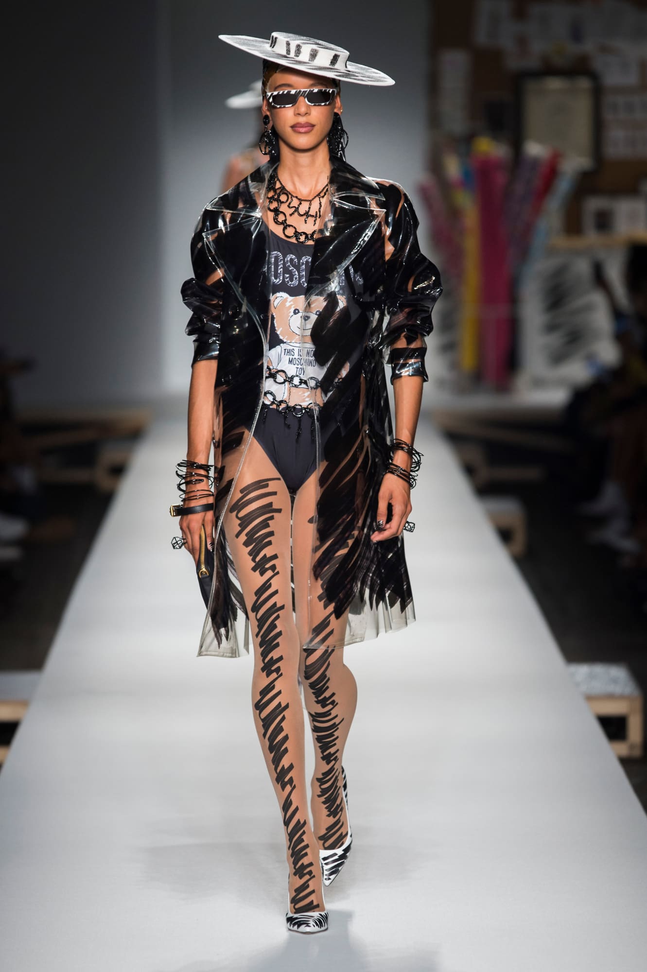 Značka Fendi ponechala transparentnosť a niektoré plastové kabáty a kabelky potlačila logom F.