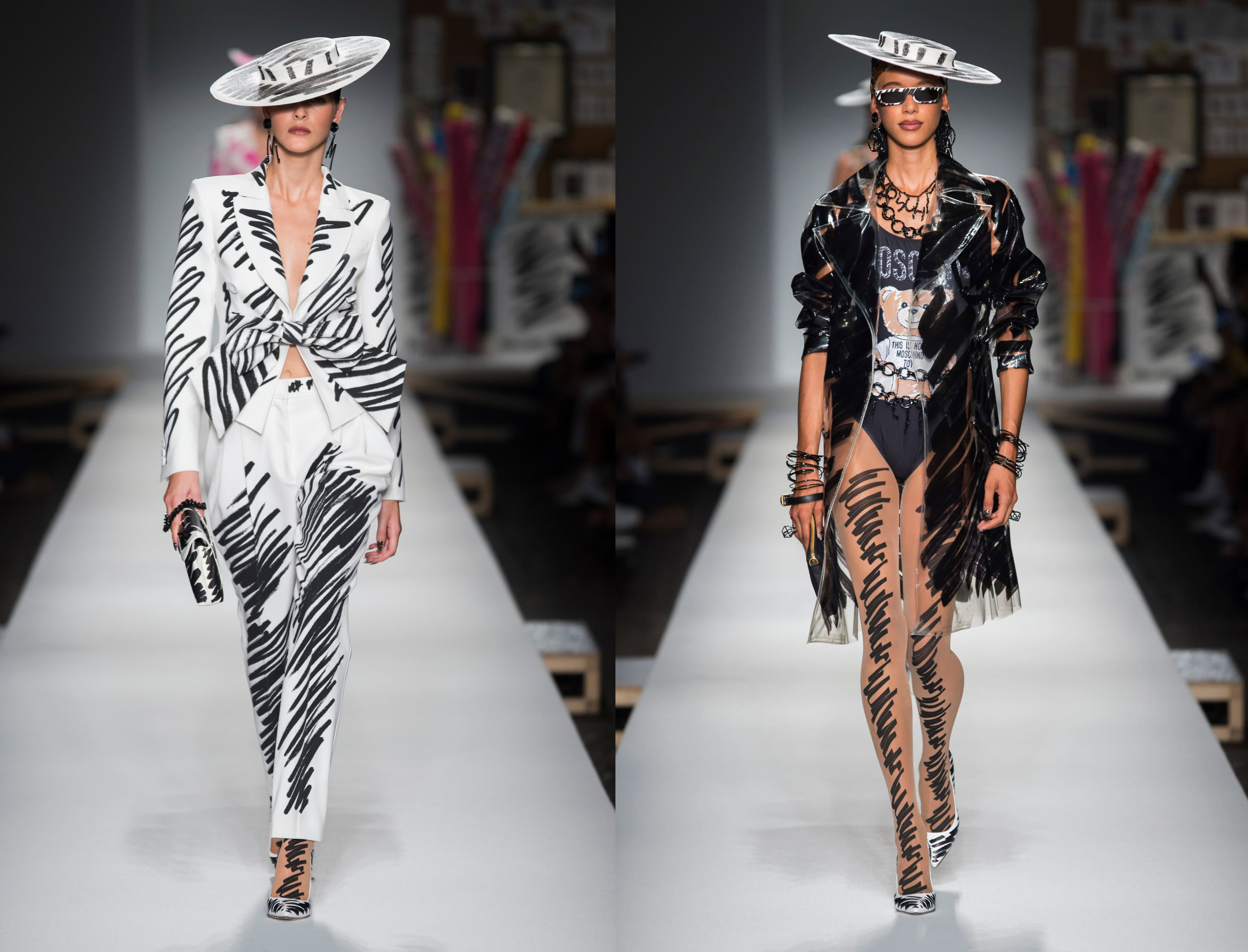 Kolekcia Moschino pre sezónu Jar/Leto 2019 bola dievčensky svieža, opäť žartovná, potlače akoby neviazané, nedbalé, grafické ťahy náhodne riešené sa objavili na oblečení z textilu, plastu, doplnkoch – klobúkoch, pančuškách, kabelkách aj topánkach. Značka Moschino opäť priniesla expresivitu a jedinečnosť dizajnu spojenú s infantilnou hravosťou, ktorá nekorešponduje s komerčnosťou.