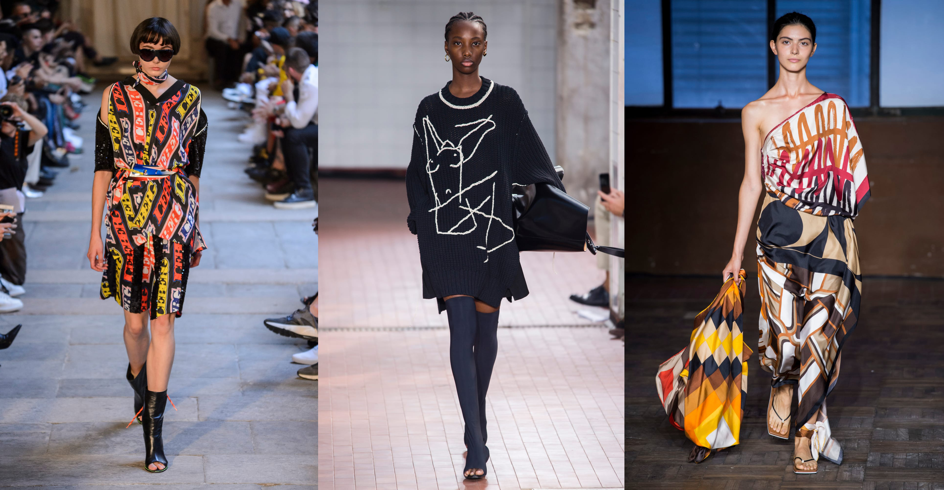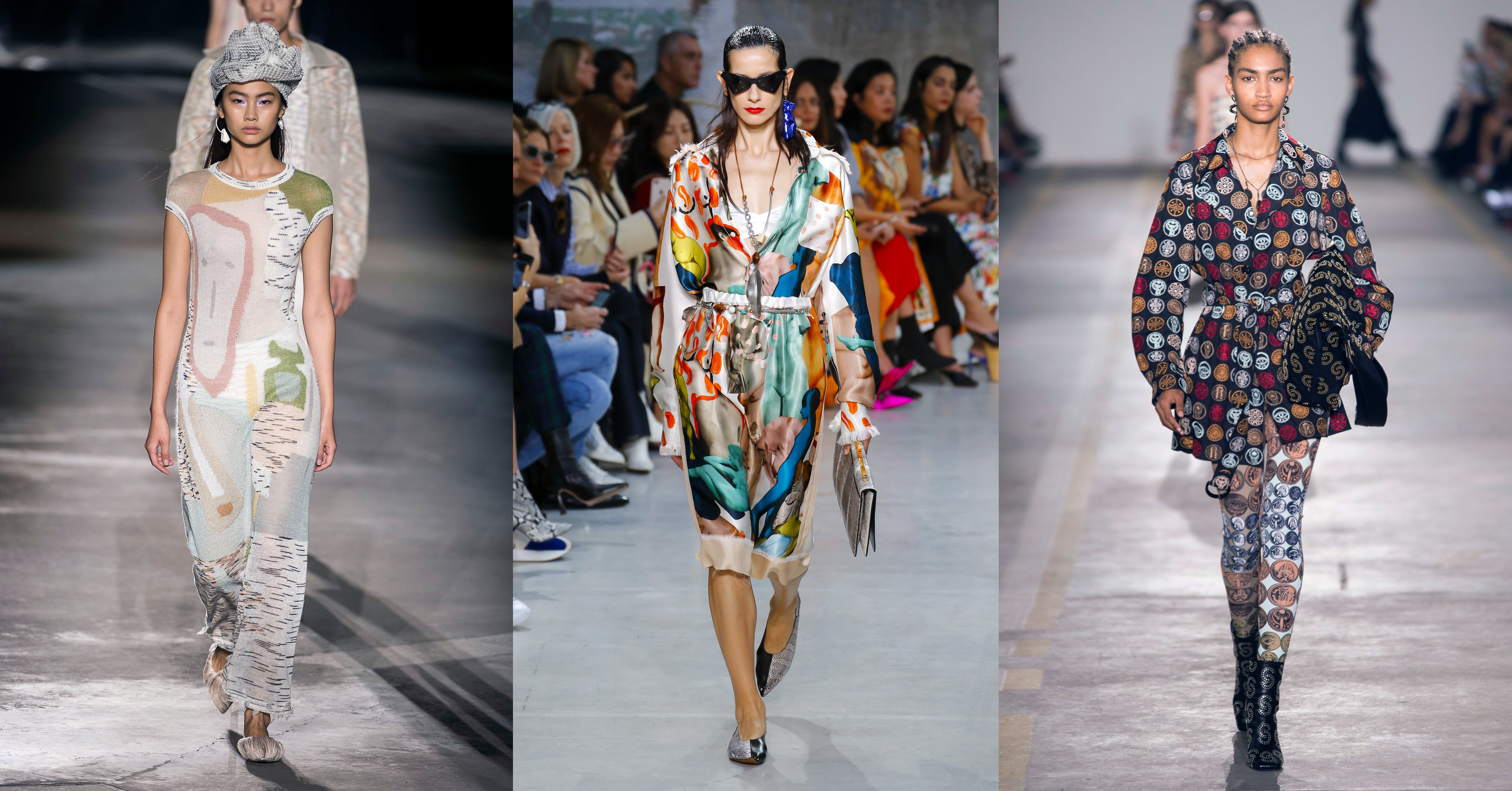 Prekombinované potlače uviedla aj návrhárka Erica Cavallini – úplne vpravo. Nasledujúcu sezónu sa teda vôbec nemusíme obávať fádnosti.