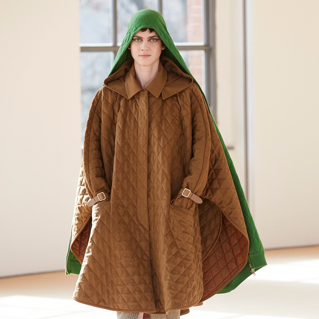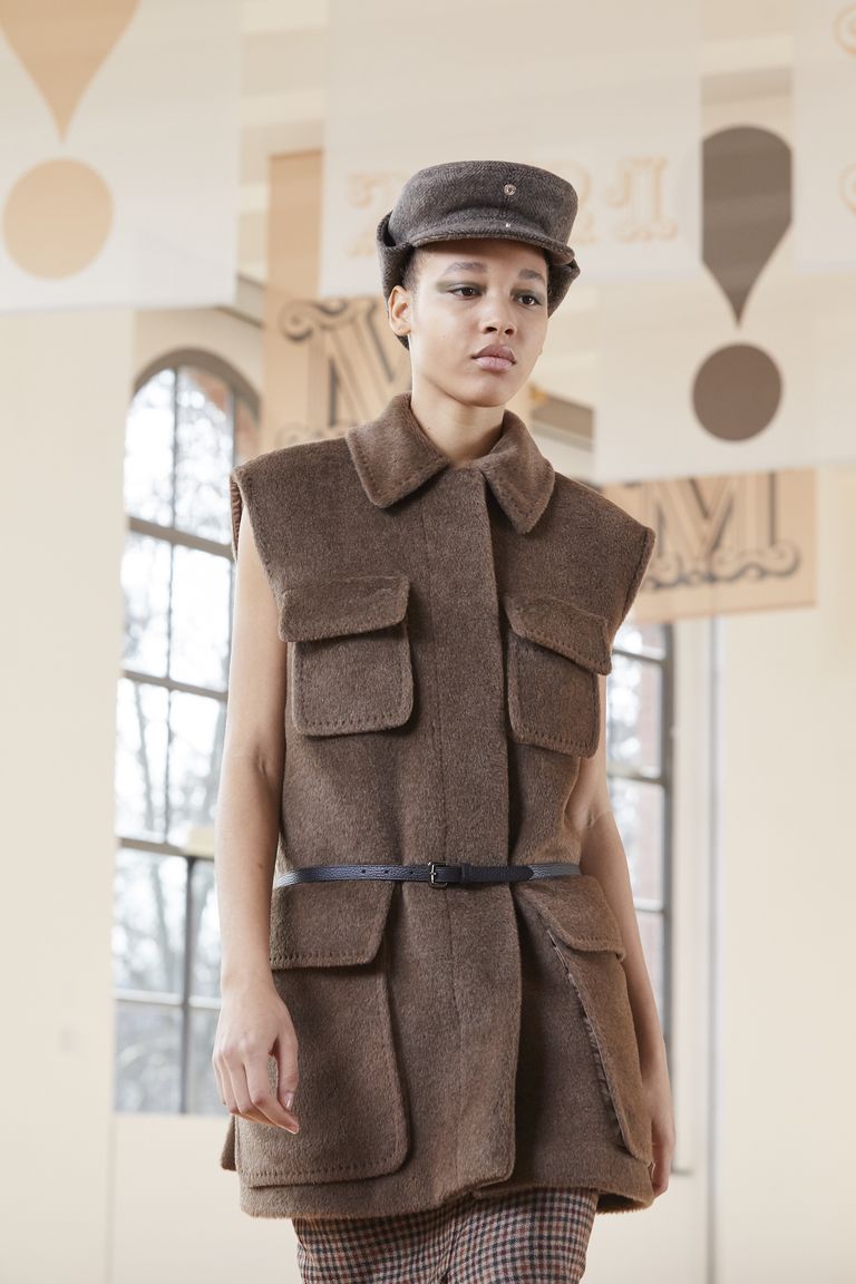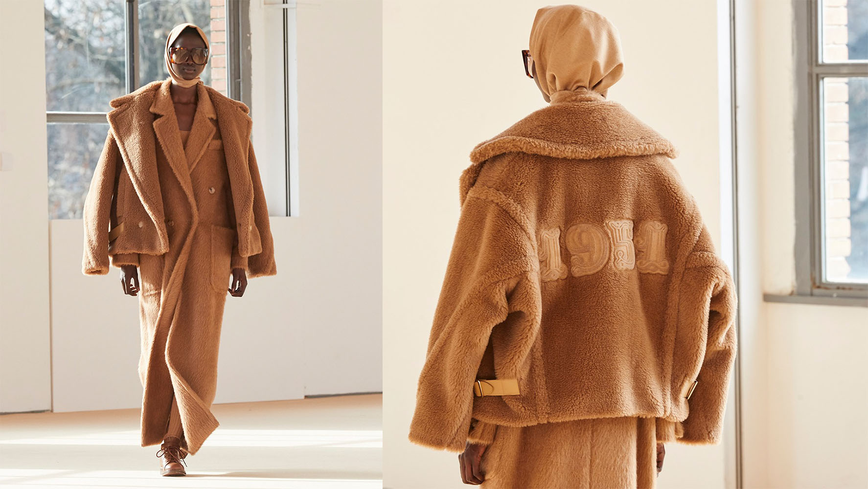 Prevládajú tvary zámotkov, kukiel a vajec v nadrozmerných teddy bear/medvedíkových kabátoch typických pre módny dom Max Mara, ktoré premieňajú pohodlie na vlajkovú loď aj na najsofistikovanejšiu garderóbu. Sivá, olivovozelená a čierna chladná, je vzhľad nasledujúcej zimy v štýle Max Mara, ktorá zahreje tak, ako obľúbené teplé odtiene ťavích kabátov.