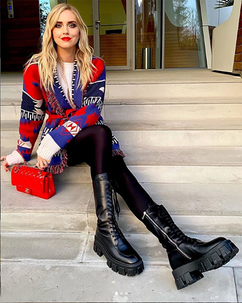 Najznámejšou z fashionistiek je nesporne Talianka, blogerka, influencerka a podnikateľka Chiara Ferragni, udávačka módnych trendov. Chiara a jej rebelský Prada look.