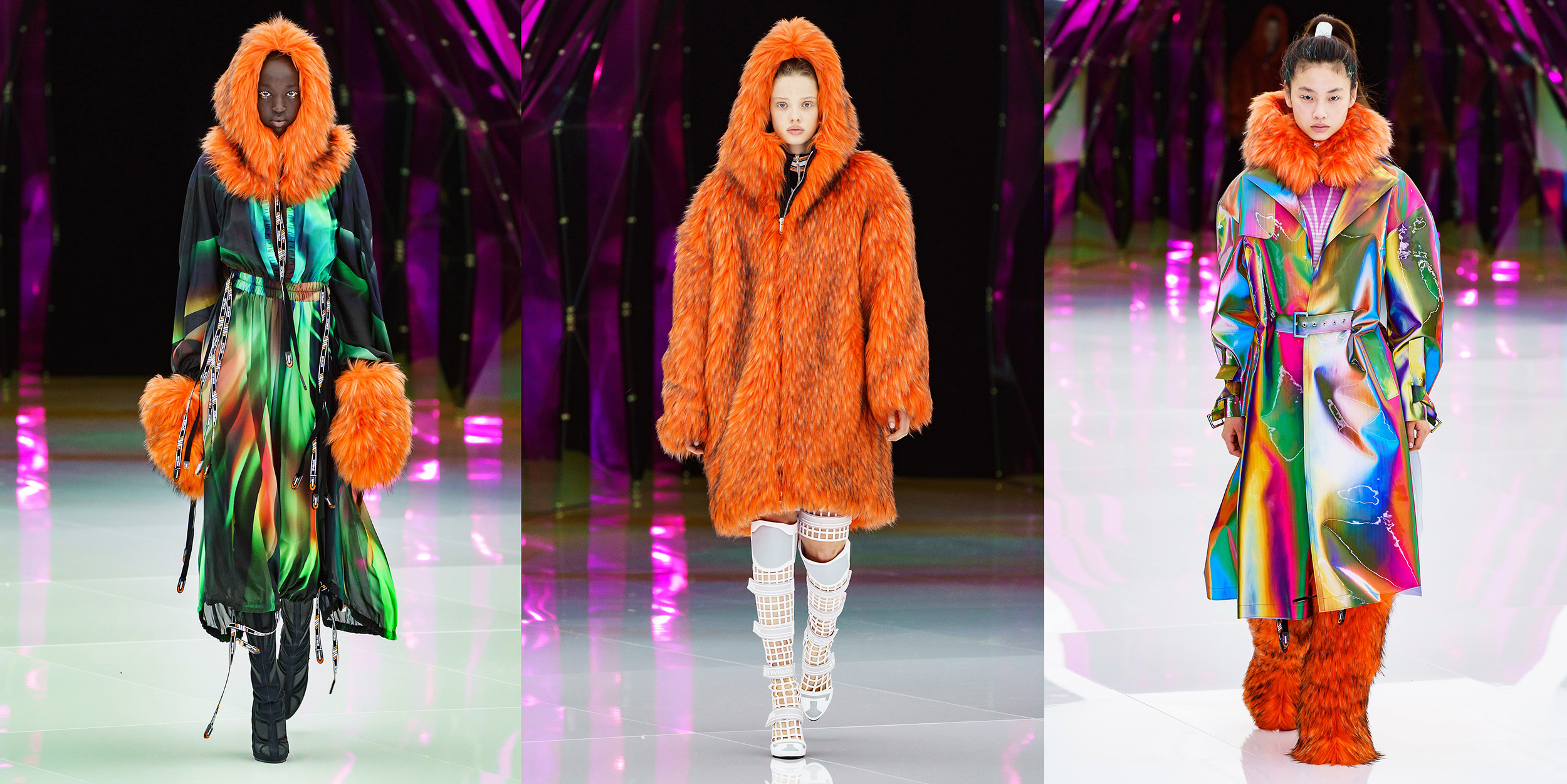 Na móle sa striedali kožušinové kabátiky s chlpatými kapucňami a super huňatými kožušinovými čižmami do polárnej zimy, bomber bundy, overaly, šaty a krehké modely akoby zhotovené z ľadových črepín. Použité kožušiny však neboli pravé.