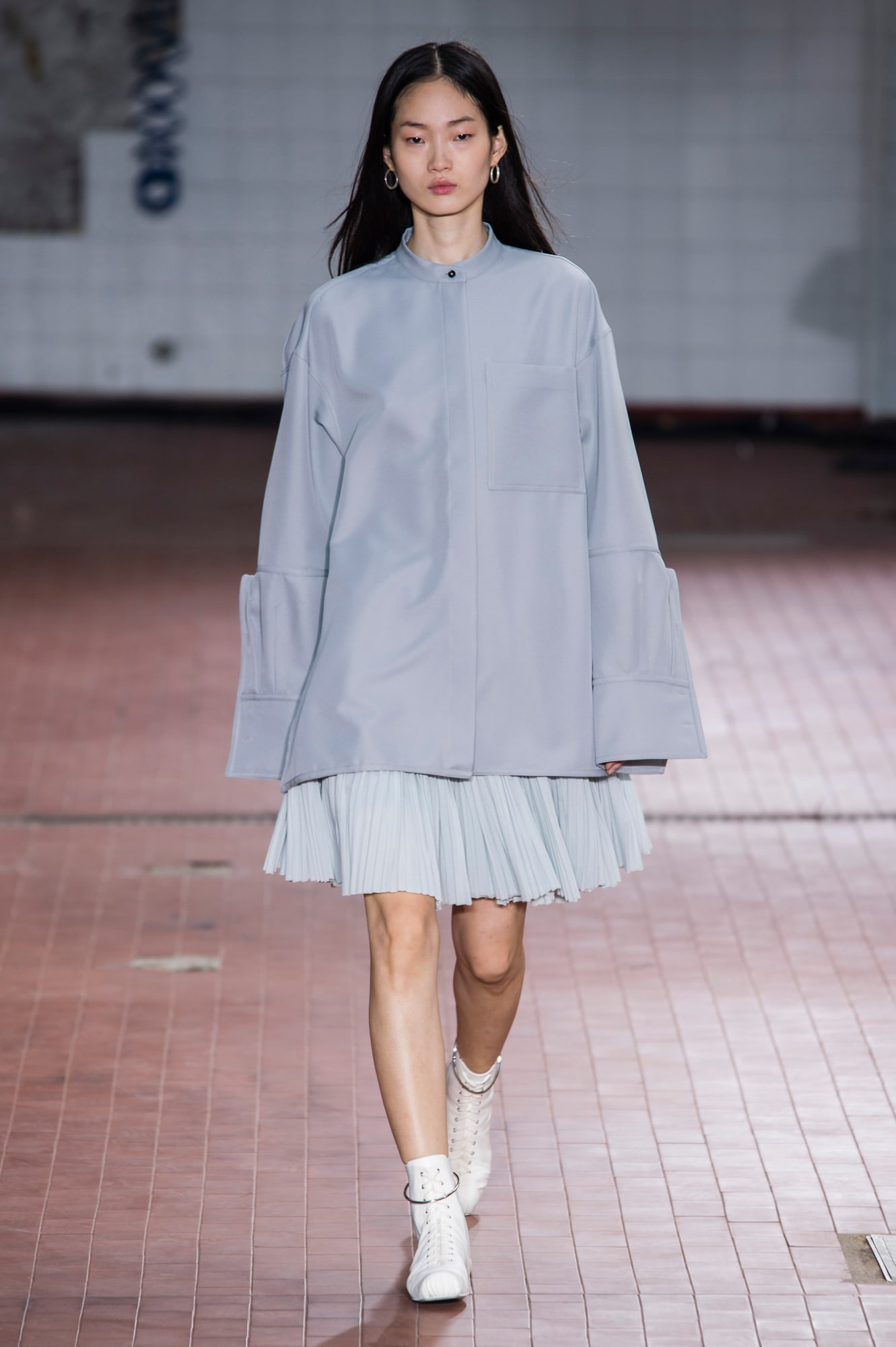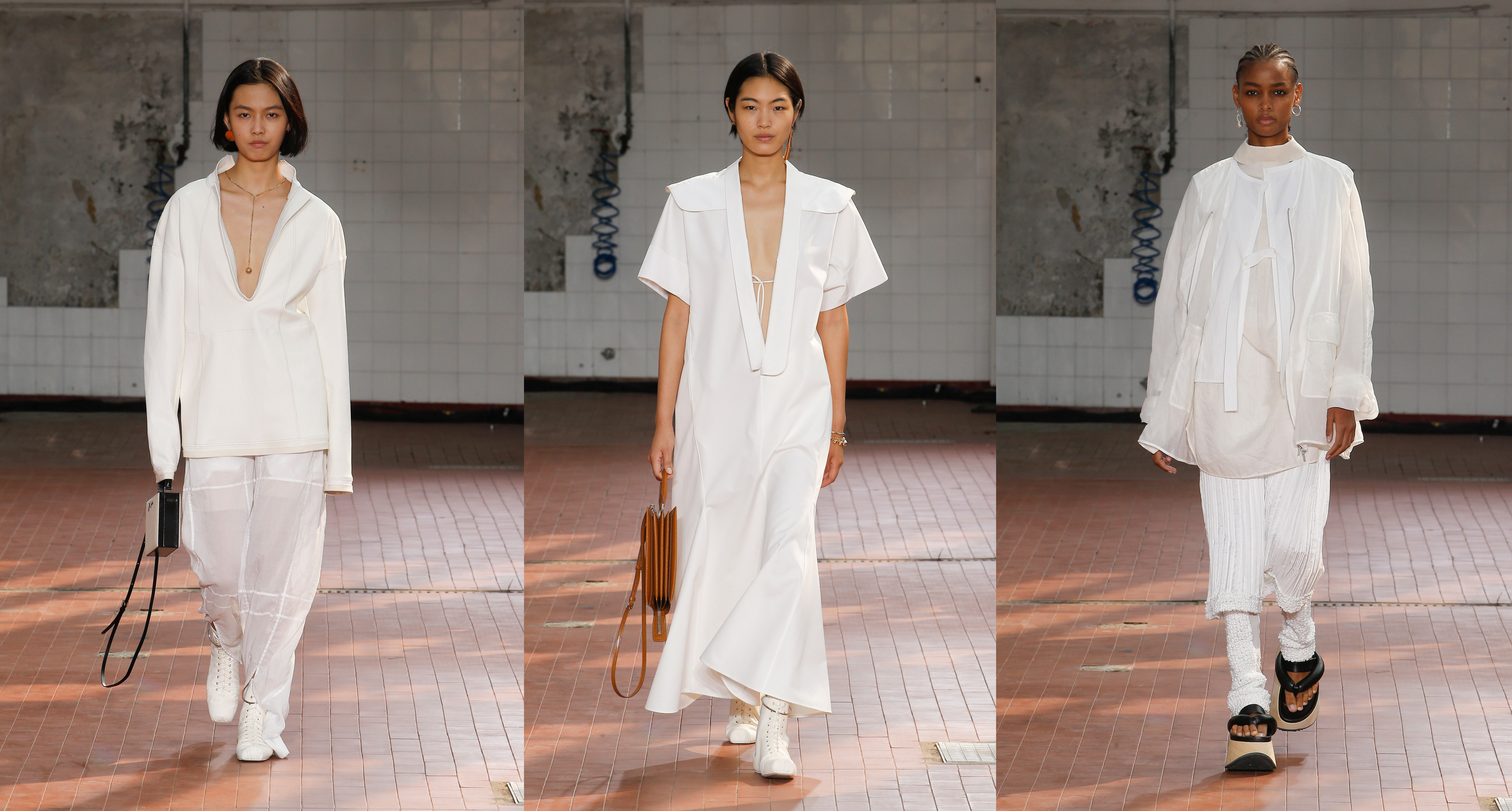 V ďalšej časti prehliadky značky Jil Sander sa do utilitárnosti a strohosti premietol aj jemný závan ženskosti so zachovaním estetickosti módneho domu. Oversize – nadmerné strihy, voľné strihy, biela nevinná farebnosť a rafinované výstrihy, či sukne, nežne doladili a obmäkčili úvodnú strohú prísnosť kolekcie.