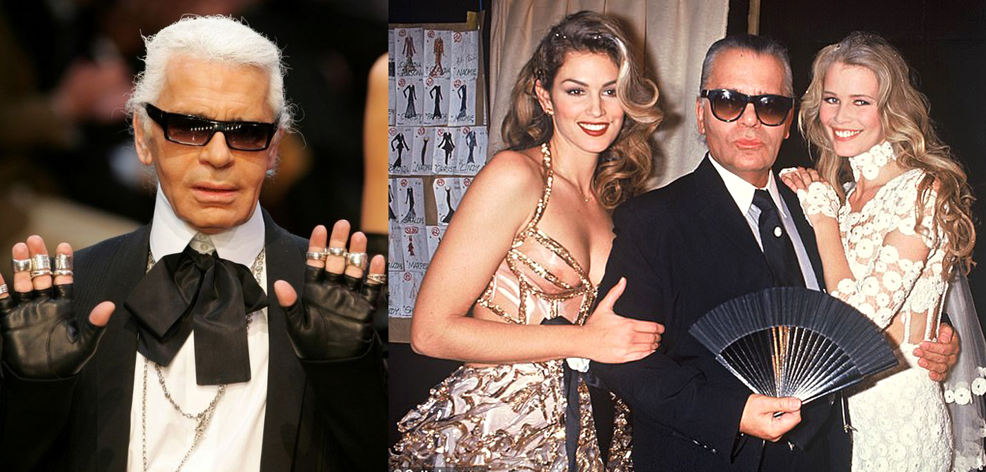 Legendárny dizajnér Karl Lagerfeld známy pre svoj nezameniteľný vzhľad – elegantný look, vlasy učesané dozadu, dlhý chvost na zátylku, vysoký golier a rukavice bez prstov,  nebýval vždy taký chudý a vo forme. Na prehliadke značky Chanel v roku 1993 s ikonickými topmodelkami 90. rokov Claudiou Schiffer a Cindy Crawford mal zopár kíl navyše a zvykol používať vejár. Práve topmodelky 90. rokov Kate Moss, Linda Evangelista and Claudia Schiffer,  sa spájajú hrdo s menom Karl Lagerfeld, no dizajnérovými rukami prešli aj ďalšie najvychytenejšie modelky a známe tváre počas rôznych dekád.  Výnimkou nie sú ani známe tváre ako Vanessa Paradis, speváčka Lily Allen, Lilli Rose Deep,  či obľúbená modelka neskorších období Cara Delevingne.  Jeho prispôsobivá osobnosť zmenám spoločnosti a móde a stále sršiaca energia ženúca ho neustále vpred zariadili, že módnym svetom plával ako neohroziteľný a stabilný velikán zažívajúci rôzne éry a udávajúci trendy.