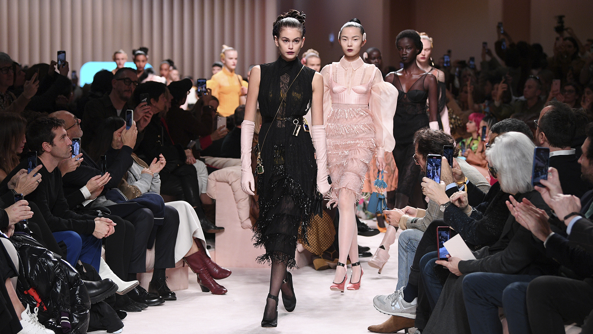 Talianska módna značka Prada naštartovala túto sezónu prehliadkového týždňa skutočne bombasticky potom, čo svet módy trpel a stagnoval kvôli pandémii koronavírusu. Na februárovú prehliadku kolekcie s názvom „Ideológia Prady“ pozvala najvyhľadávanejšiu a najsledovanejšiu hviezdu televíznej reality show Kim Kardashian priamo z USA, ktorá spôsobila v meste ošiaľ. Davy fanúšikov kričali pred prehliadkou Prada celé hodiny, keď sa hviezda konečne zjavila v šedo-zelenom outfite Prada s rukavicami, zamávala a .