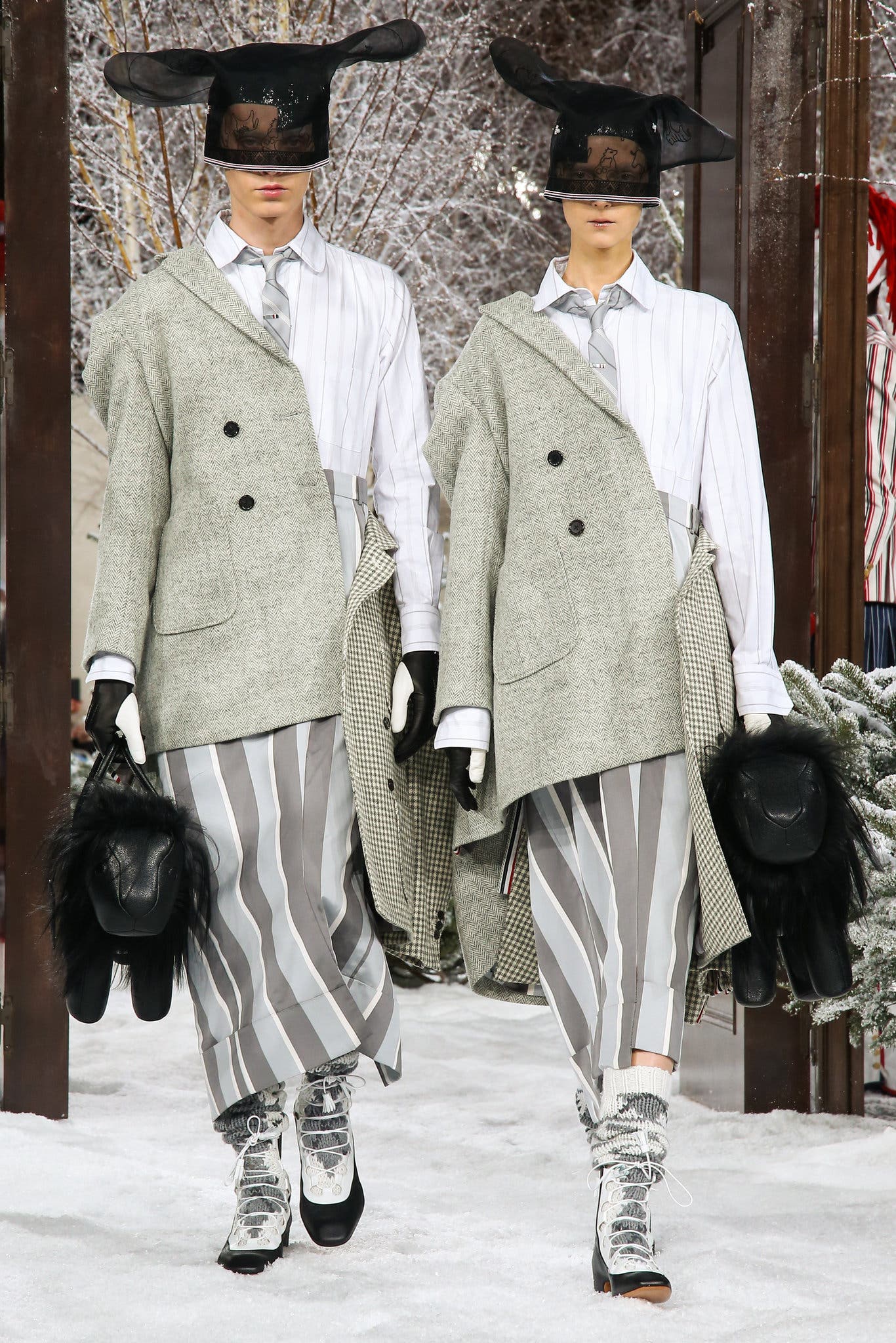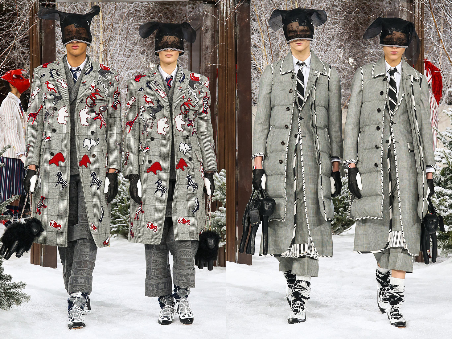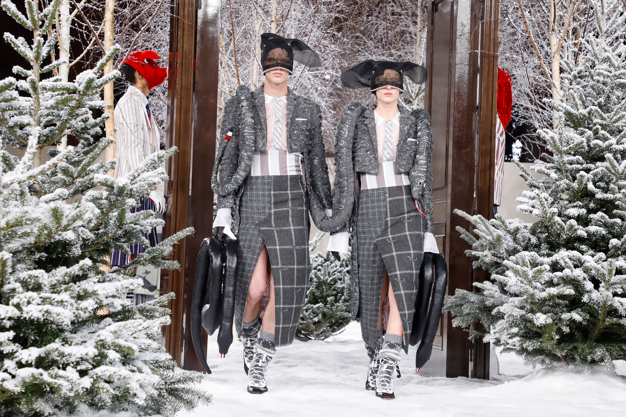 Dizajnér Tom Browne usadil divákov z upršaného Paríža do zasneženej krajinnej scenérie. Apokalypsa na parížskom fashion weeku bola jasne citeľná. Odrazila sa tak v značke Balenciaga ako aj u Toma Browne, ktorého lightmotívom zimnej kolekcie 2020-21 sa stala téma Noemova Archa. Toto všetko je reflexiou na pálčivé aktuálne problémy, ktoré kvária svet ako je globálne oteplovanie, znečistenie planéty, stále častejšie prírodné katastrofy a aktuálne vyčínajúci Corona vírus.