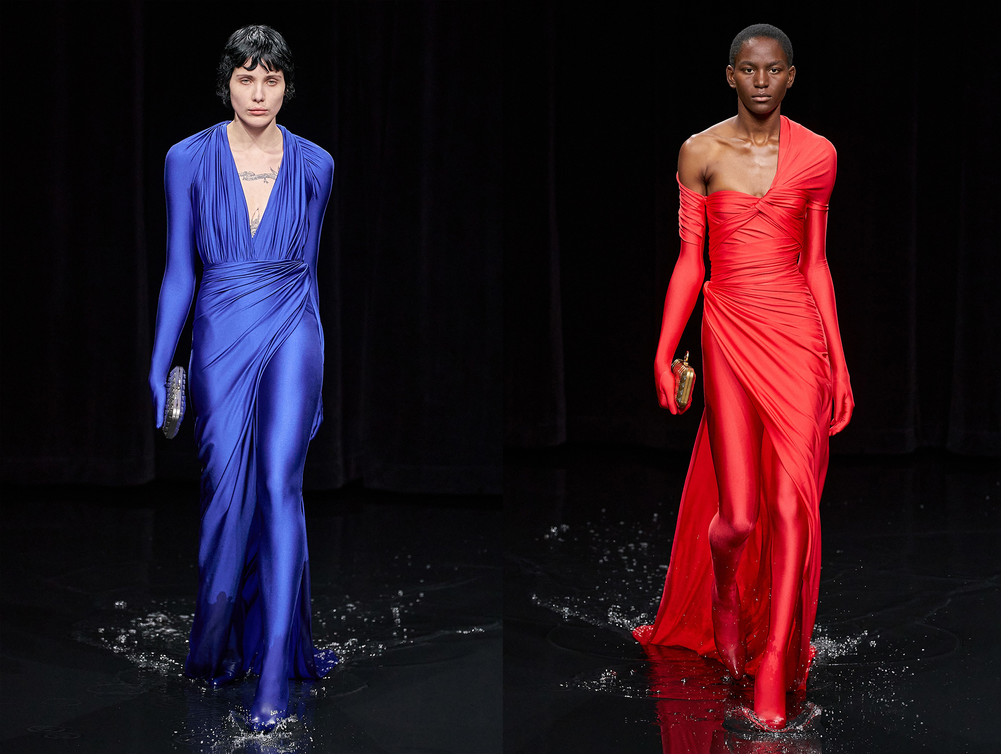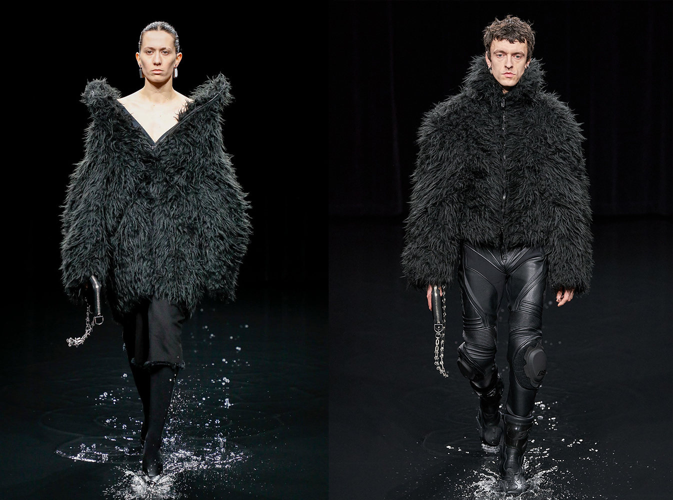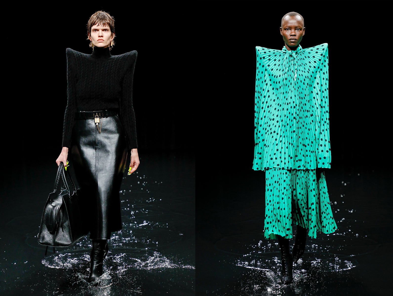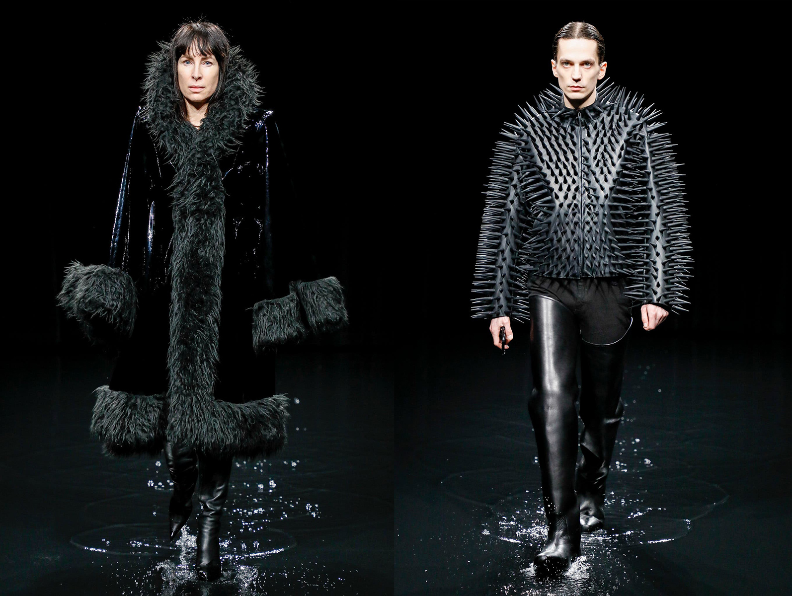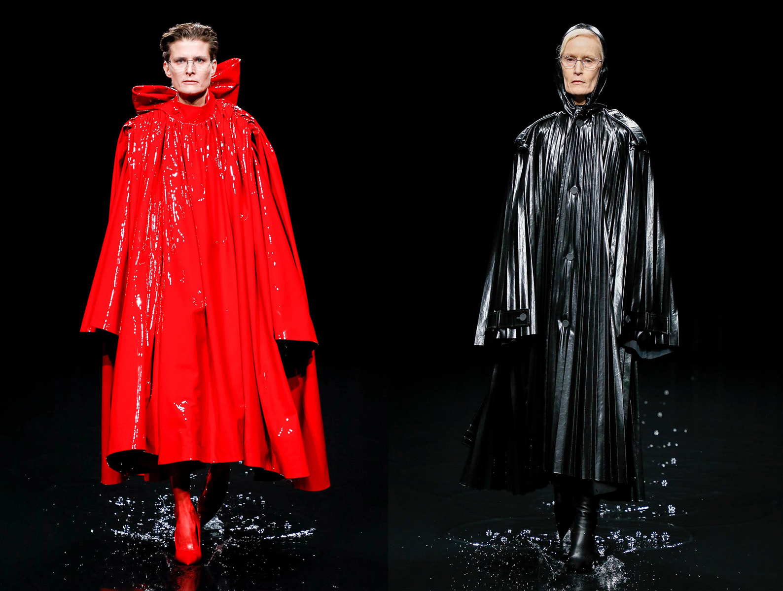 Hotovú apokalypsu pripravila značka Balenciaga, keď do vodou naplneného prehliadkového priestoru opticky vyzerajúceho že až do výšky tretieho sedadla diváka, vyslala na prehliadkové mólo. Hmla a vodným oparom nasýtený priestor, kde za každou kvapkou vlniacou vodnú hladinu navodzovala prítomným sediacim divákom pocit, že Apokalypsa práve nastala.