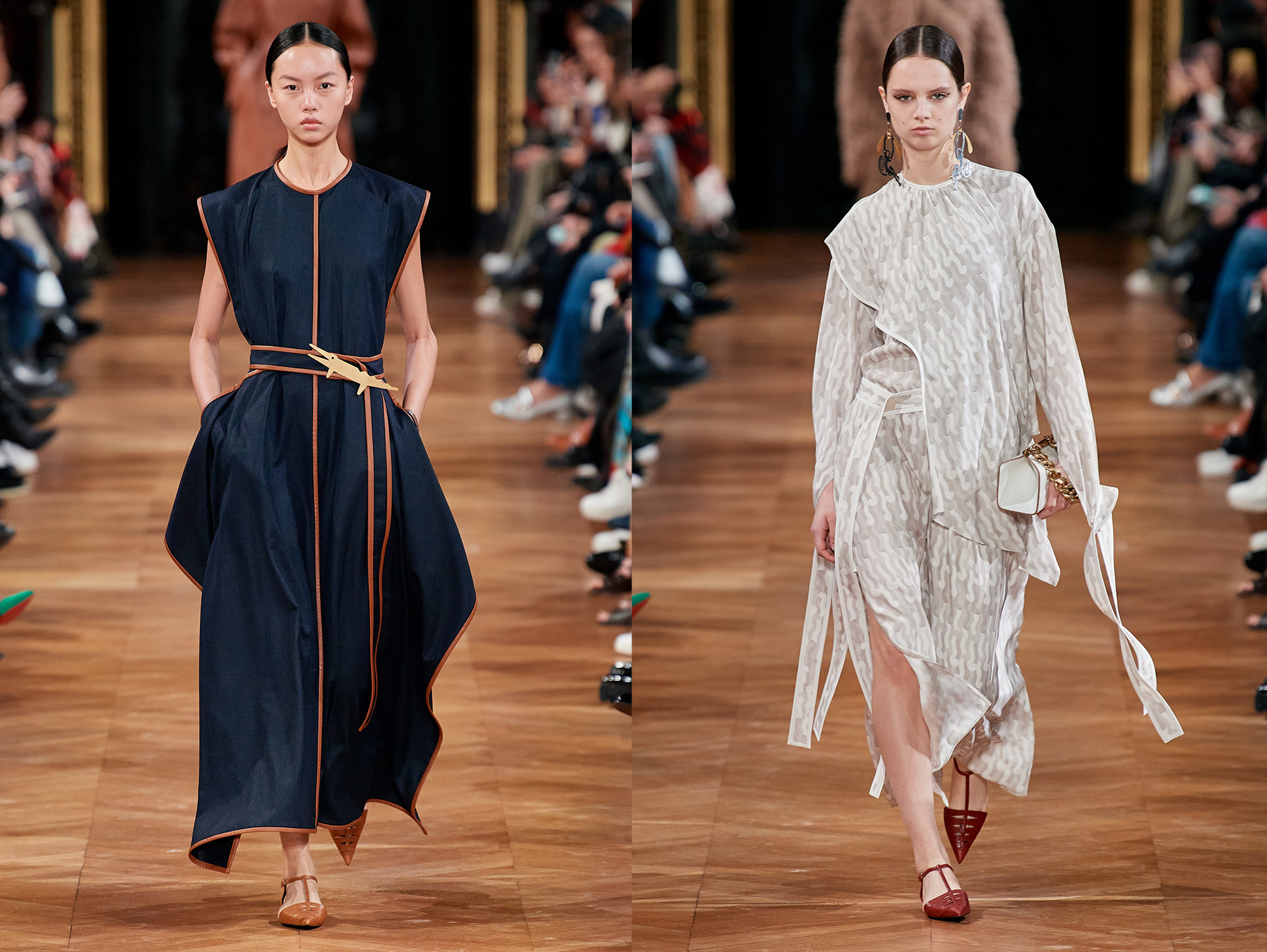 Už v úvode show prichádzajúcich divákov vítali zvieracie kostýmy, aké vídať na športových podujatiach. Držali v rukách držali mini stromčeky so spraávou, že ich vysadením pomôžeme znížiť produkciu oxidu uhličitého. Módna dizajnérka Stella McCartney opäť nabádala k hlavnému lightmotívu show: „Všetci by sme mali byť uhlíkovo neutrálni“. Jej značka od roku 2001 upustila od používania koží a kožušín. Pridali sa samozrejme aj iné značky v módnom biznise. Digitálna pozvánka niesla logo: „Make love not leather.“