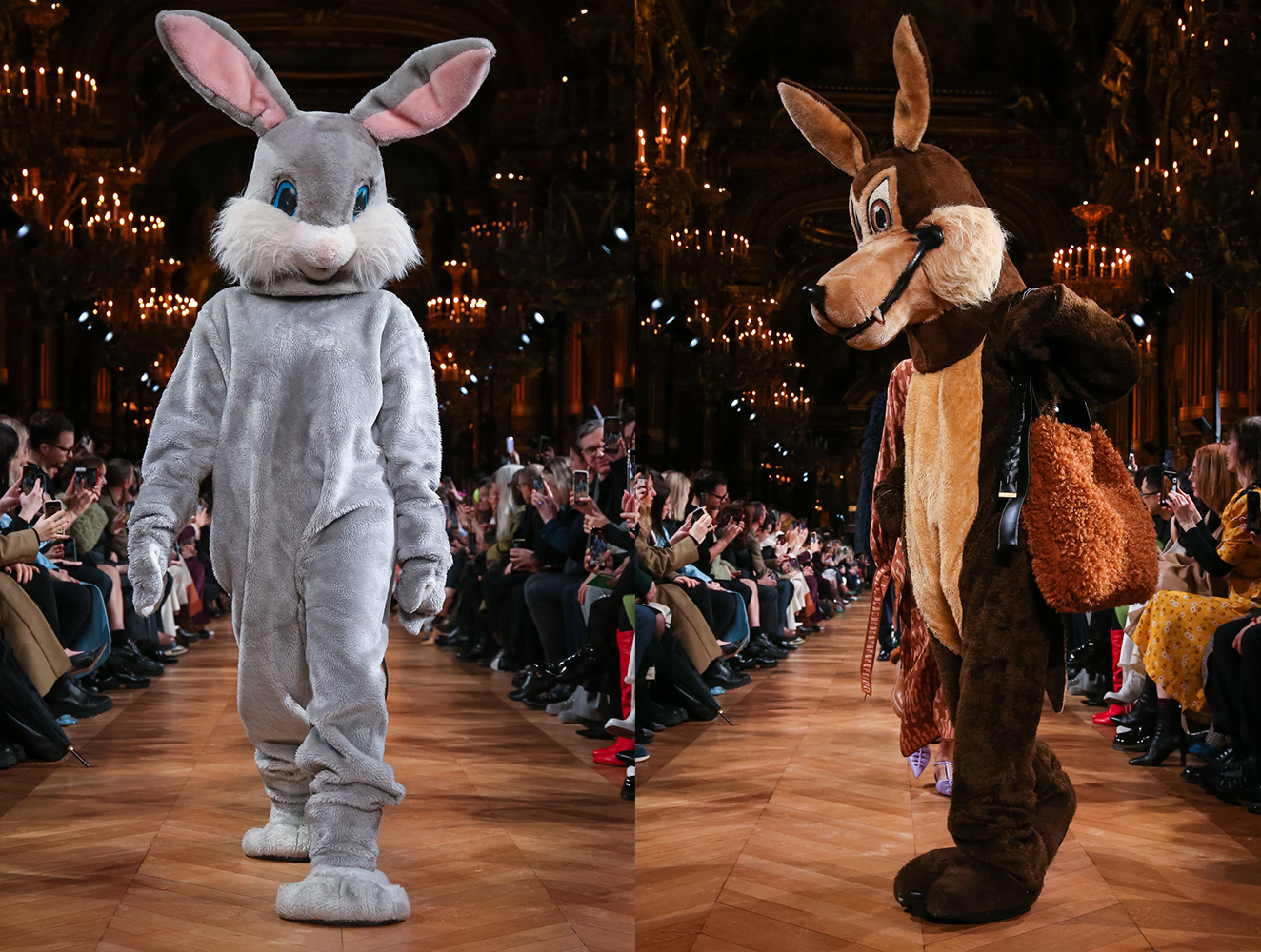Módnu show „ukradli“ a pozornosť na seba strhli zvieratká promenádajúce sa po móle. Modelky v životnej veľkosti zvierat, v zvieracích kostýmoch zajaca, líšky, koňa, kravy, krokodíla sa nezvyklo objavili v závere show Stelly McCartney na Paris Fashion Weeku, .